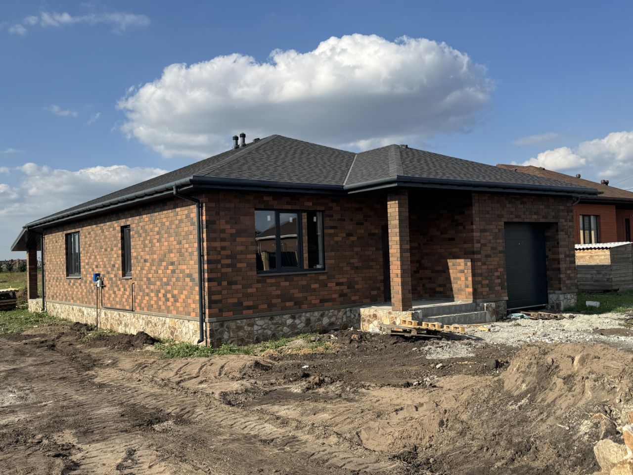 ЦЕНА ЗА НАЛИЧНЫЙ РАСЧЕТ ! Срок сдачи дома под чистовую отделку ноябрь 2024 года. Пример дома вы видите на фото, конечный результат может незначительно отличаться. Планировка ДОМА: Три спальни, кухня-гостиная, два санузла, терраса с выходом на участок. Конструкция дома: Армированный монолитно-ленточный фундамент. Цоколь выложен блоком ЖБК СКЦ. Внутренние стены выложены газосиликатным блоком Аэробел, наружные стены облицованы керамическим кирпичом Баварская кладка. Окна пластиковые КВЕ 3 стекла. Перекрытия деревянные, утепление 15 сантиметров. Кровля дома выполнена из металлочерепицы и установлена водосточная система. Отделка дома ЧИСТОВАЯ. Под ключ на 800 тыс. руб. дороже. Коммуникации: Отопление дома осуществляется двухконтурным котлом с использованием радиаторов отопления и системы теплого пола. Газ обвязка сделана, присоединение выполнено. Вода центральная, присоединение выполнено. В летний период с водой проблем нет. Электричество заведено в дом, подключено. Канализация Септик. Инфраструктура: Неподалеку располагается магазин, автобусная остановка, в центре располагается 5ка, Магнит, детский сад, школа, спортивные площадки, спорт комплекс и многое другое. Рядом есть небольшие лесополосы. Забронировать дом можно уже сейчас, и заморозить цену, дальше к завершению всех работ не исключено подорожание дома. Для просмотра нужно только позвонить.
