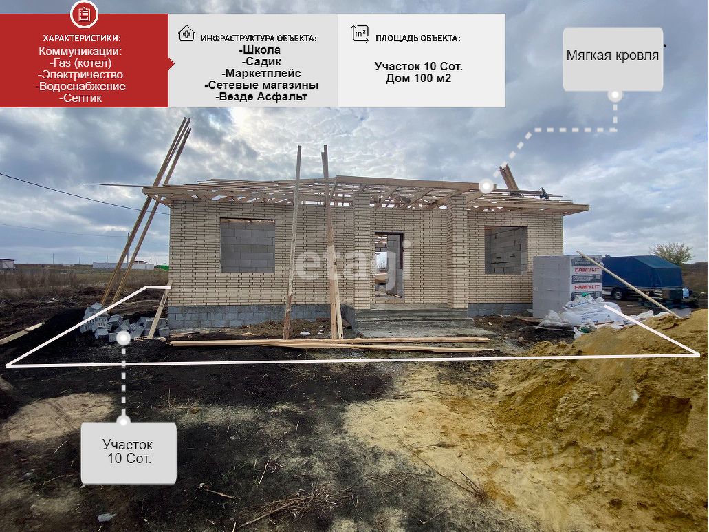 Продается участок с последующим строительством дома качественной постройки. Подходит под семейную ипотеку-6%, IT-6%, вторичную, сертификаты, использование мат.капитала , наличные средства. Фундамент:ленточно-свайный. Стены: газосиликтный блок, утеплитель, кирпич. Крыша: мягкая кровля. Септик: 4 кольца по 1,5 м. Отопление: двухконтурный газовый котёл, тёплый пол по всей площади +радиаторы. Планировка: кухня-гостиная 24м2 с выходом на терассу 18м2, 3 спальни, котельная, с/у. Отделка:чистовая, натяжные потолки. Участок ровный, чернозем. Дорога заасфальтирована, рядом остановка, магазин, садик, школа. Подобные варианты домов и участков под строительство ещё есть р-не Маришка Лог,в с. Новокладовое, с. Озерки, с. Федосеевка, Они подходят под сельскую ипотеку 3%.