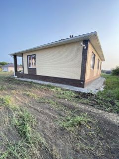 Продается дом под ключ. Конструкция: Монолитно-ленточный фундамент. Цоколь выложен полнотелым бетонным блоком. Конструкция стены: Газосиликатный блок 400мм облицованный фасадной декоративной штукатуркой. Деревянно-балочная система перекрытия с минеральным утеплением 150мм. Сложная конструкция крыши обшита металлочерепицей. Ламинированные окна с трех камерным стеклопакетом. Планировка: Холл Три спальные комнаты, одна из которых со своим санузлом Основной санузел Кухня-гостиная Котельная имеющая отдельный вход со двора Терраса 3х9м Навес примыкающий к дому Внутренняя отделка: В спальных комнатах напольное покрытие представлено ламинатом, в остальных помещениях керамогранитная плитка. Стены оклеены обоями. Установлены межкомнатные двери. Натяжные потолки с точечным светодиодным освещением. Благоустройство: Дворовая и прилегающая территория выложена тротуарной плиткой. Имеется основной въезд и технический. Пешеходная дорожка. Отмостка. Участок огорожен по периметру, с фасадной стороны капитальным забором. Все коммуникации центральные заведены в дом.