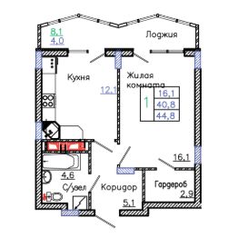 44 м2