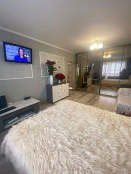 Продаётся отличная 1-комнатная квартира после капитального ремонта. Окна ПВХ, балкон застеклён, утеплен, выведено освещение. Заменены входная и межкомнатные двери. Заменена проводка. Новая сантехника, современный кафель, в с/у установлено зеркало с подсветкой. Качественный линолеум, натяжные потолки. В прихожей встроенная гардеробная. Отличные соседи. Удобное расположение, рядом остановки во все направления, детские сады, школы, магазины, банки, торговые центры, службы доставки.