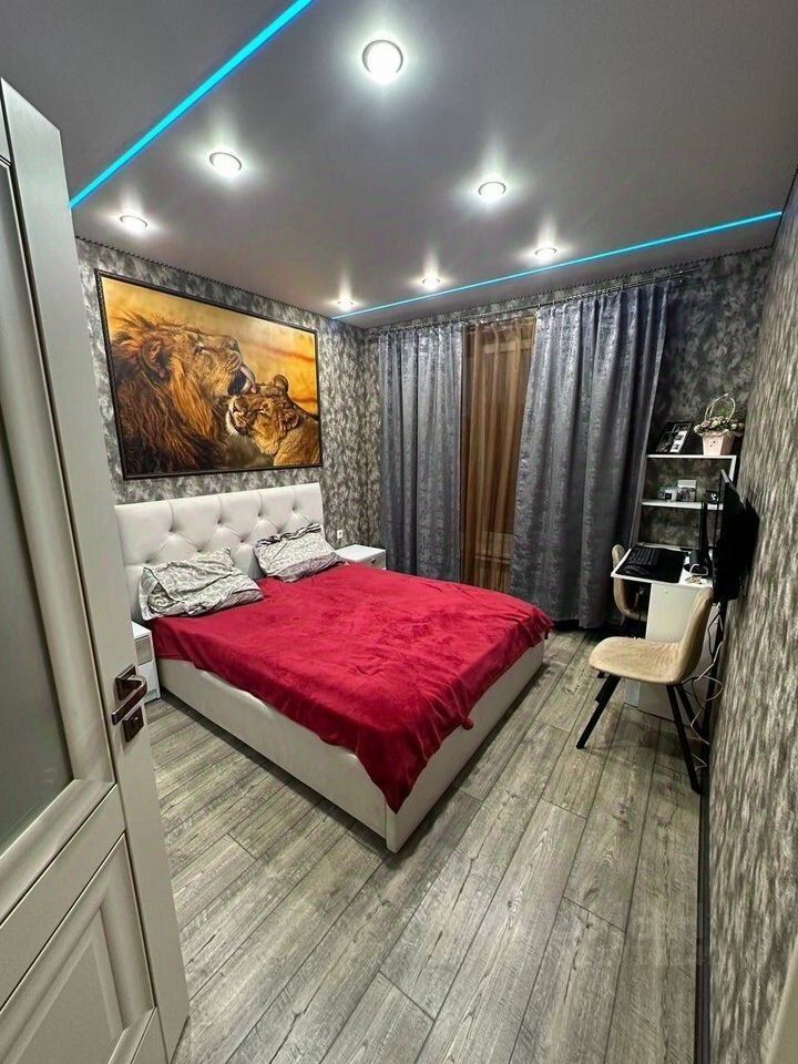 Большая 2-к квартира с идеально ровными стенами ИНДИВИДУАЛЬНОЕ ОТОПЛЕНИЕ! Кирпичный современный дом Появилась в продаже просторная квартира, королевских размеров, площадью 82 м2. Подойдет тем, кто хочет найти квартиру с качественным НОВЫМ ремонтом, в которой почти не жили! Квартиру укомплектовали дорогой техникой и мебелью. Поменялись жизненные планы. Ищем новых хороших хозяев! Остается всё, что на фото, кроме личных вещей. Эта квартира хорошо подойдет семейной паре, молодой семье, людям кому хочется много личного пространства. Для работников на удаленке по вкусу придется отдельный светлый кабинет. В большом зале, площадью 26 м2 удобно примать гостей. Места, на комфортном широком диване, хватит всем! В зале также находится рабочий стол с компьютерным креслом. Полы по всей квартире уложены единым ковром, без переходов и перемычек. В прихожей, коридоре и кухне на полу керамогранит, а в комнатах пол, незаметно для взгляда, переходит в ламинат того же цвета и фактуры. В прихожей разместился внушительных размеров шкаф. То, что нужно для владельцев объемных гардеробов. В спальне установлен комплект высококлассной мебели выполненный под индивидуальный заказ (шкафы, кровать, тумбочки). Заказчик хотел видеть на шкафах вставки из матового стекла в комбинации с кожаной обивкой. Получилось стильно и оригинально. Светлые тона интерьера в спальне очень спокойные и лаконичные. За стеклянными дверьми-купе, отделяющими спальную зону, расположился просторный и светлый рабочий кабинет с большими окнами. В кабинете имеются два вместительных шкафа-купе, там поместятся все рабочие документы, одежда и семейная библиотека. На шикарной кухне установлен дорогой белый гарнитур с очень качественной фурнитурой и цельной каменной столешницей. Кухня практично оснащена встроенной техникой: духовой шкаф, варочная индукционная поверхность, принудительная вытяжка, посудомоечная машина, телевизор. Всё в идеальном состоянии. На кухне в удобной нише встроен глубокий шкаф, глубиной 70 см для хранения баночек и бытовой утвари. Напротив шкафа спрятался широкий двухдверный холодильник, готовый вместить двухнедельный запас продуктов) Индивидуальное отопление в квартире позволяет поддерживать климат на комфортном уровне в холодный период. Нет зависимости от центрального отопление, а платежи за тепло существенно ниже. Раздельный санузел выложен кафелем, в ванной размещена стиральная машина. В этой квартире преимуществом являются: множество систем хранения, просторные помещения и функциональный рабочий кабинет. И никаких вложений в обустройство. Для Вас уже всё заботливо подготовили! Отличная инфраструктура вокруг дома. Школа 50 во дворе. Там же, во дворе, частный детский садик. Все под рукой. Магнит, Пятерочка, Шашлык, Кофейня, расположены в 150 метрах от дома. Вокруг дома автобусные остановки. Звоните! Такие варианты бывают редко - забирают быстро! Арт. 127594496