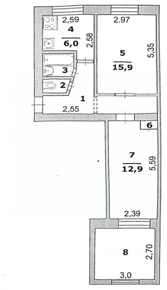 2-к, 60 лет Октября, 9