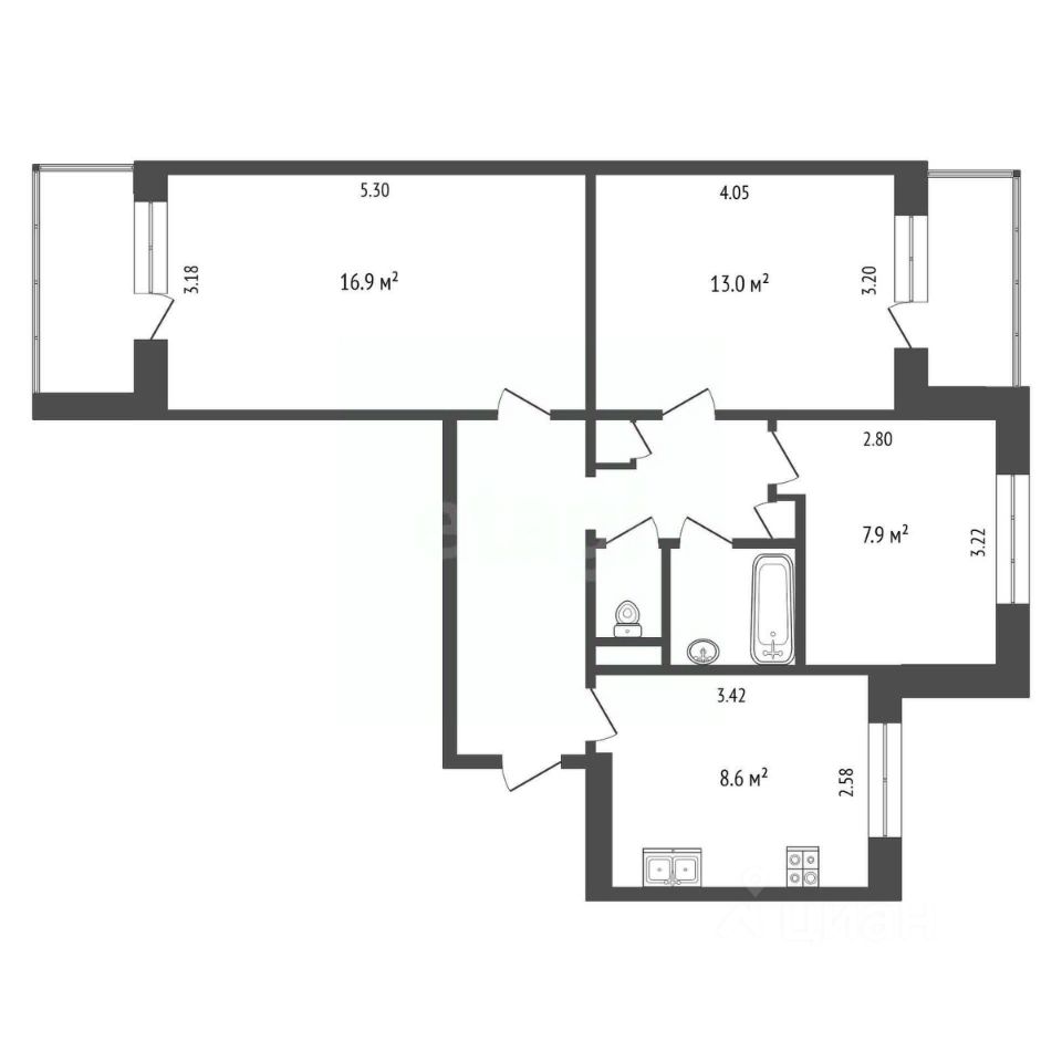 Трехкомнатные
