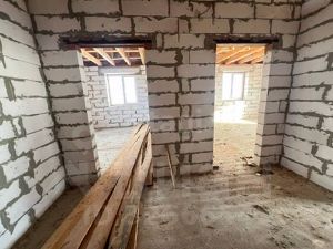 Продается дом, под финишную отделку, 130м2 (крытая терраса). Адрес - Район ''Пролески'', ул. Земляничная, 35.Планировка участка:- дом построен в двух уровнях: нижний уровень - кухня-гостиная, верхний - спальни- входной тамбур, с него вход в котельную-прачечную- раздельный сан-узел, отдельная гардеробная.- 3 спальни, одна из них мастер-спальня (своя гардеробная и сан-узел).- кухня-гостиная с панорамными окнами и выходом на террасу.- навес под машину, забор, видеозвонок.- фундамент монолитный.- стены - газосиликатные блоки с утеплением 10 см.- отделка: декоративная штукатурка (короед), мягкая кровля.- водоотведение по всему периметру дома.- отмостка по периметру дома.- бетонная дорожка, навес забетонированный, хозблок. Внутренняя отделка:Окна ПВХ, чистовая стяжка пола, теплый пол, радиаторы отопления, двухконтурный котел, штукатурка, шпаклевка. Продажа может быть осуществлена как за наличный расчёт, так и в ипотеку (по всем банковским предложениям). Возможен обмен дома на квартиру в северо-восточном районе (с доплатой).Продам 1/2 долю однокомнатной малосемейки, мкр. Буденного, недорого, пишите-звоните.Ремонт косметический, но возможна чистовая отделка по желанию покупателя.Цена 10 300 000 р. по безналичному расчёту, за наличные 9 600 000 р.