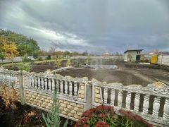 Строили для себя .Дом газосиликат +утеплитель+шлако-бетон стены 50см.Дом без внутренней отделки ,вода,электричество подведены.Первый этаж оштукатурен.Гараж большой на две машины ,двое ворот.Под гаражом подвал,сухой.На участке постройка 150м²разделена на три зоны ,Хозяйственная,летняя кухня,баня и чердак мансарда над всей постройкой.Плодоносящий сад,капитальная теплица,курятник.