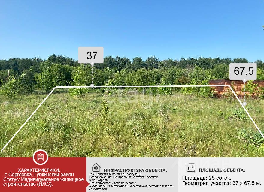 Продается уникальный земельный участок площадью 25 соток в живописном селе Сергиевка Губкинского района Белгородской области! Этот ровный и чистый участок — идеальное место для постройки вашего загородного дома мечты. С одной стороны у вас есть дружелюбные соседи, а с другой — просторы и уединение. По краю участка растут фруктовые деревья, которые создают атмосферу уюта и гармонии с природой.На территории участка уже имеется колодец для полива, что значительно упрощает заботу о вашем саде и огороде. Улица активно застраивается новыми домами, что свидетельствует о растущем интересе к этому месту. Все коммуникации — электричество, вода и газ — проходят по улице, что делает процесс подключения максимально простым и быстрым.Село Сергиевка отличается развитой инфраструктурой: здесь есть магазины, школы и медицинские учреждения, а удобное транспортное сообщение обеспечивают регулярные автобусные рейсы. Вы сможете легко добраться до города Губкин, который находится в непосредственной близости, а также до Белгорода, так как через село проходит важная трасса.Не упустите возможность приобрести этот замечательный участок! Звоните прямо сейчас, и мы организуем показ в удобное для вас время. Мы также поможем вам с одобрением ипотеки на выгодных условиях — всего под 11.9 %! Не откладывайте свою мечту на потом, действуйте уже сегодня! Код пользователя: 142308Номер в базе: 7183755