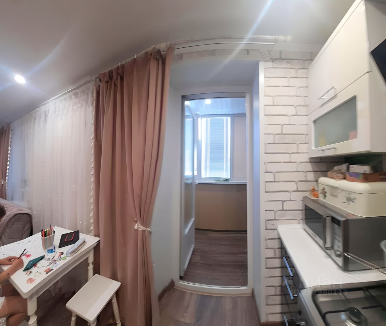 Кухня объединены с гостиной , имеется гардеробная и большая лоджия 8м2.
