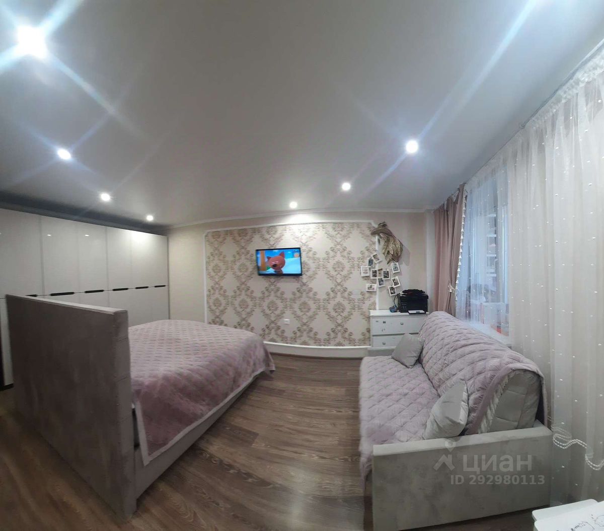 Кухня объединены с гостиной , имеется гардеробная и большая лоджия 8м2.