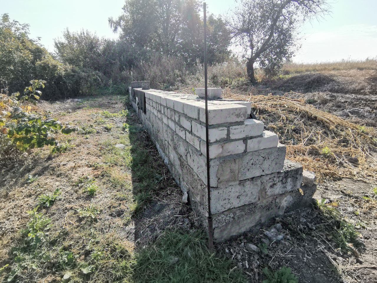 Дом 40м2, огорожен. На участке есть фундамент глубиной 1,4м, ширина 50см. Предназначен для постройки дома на 100м2. Газ в доме и в летней кухне.