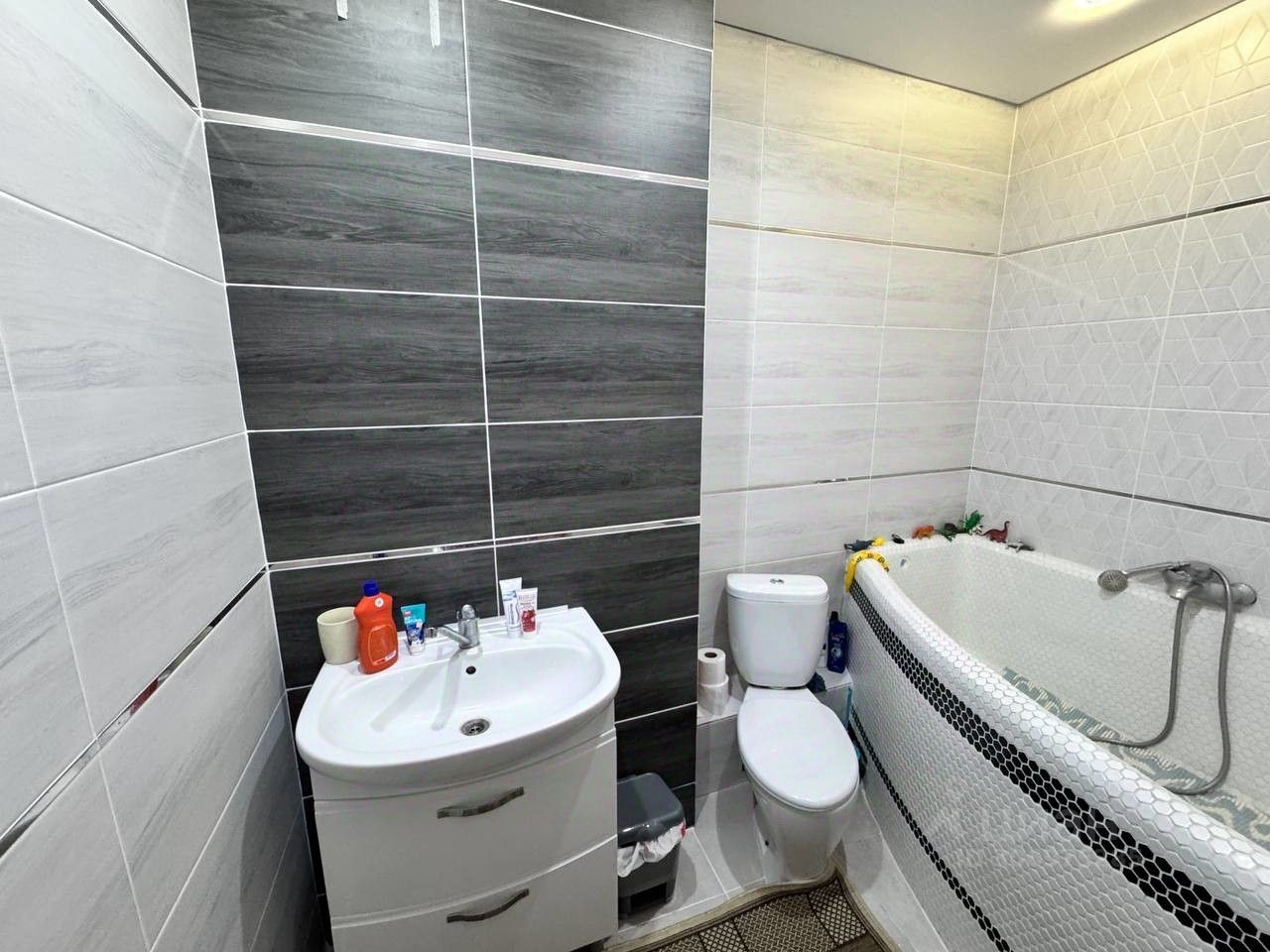 На первом этаже расположена кухня-гостиная, одна спальня 18м2, коридор, совмещенный санузел и котельная. Потолки натяжные.