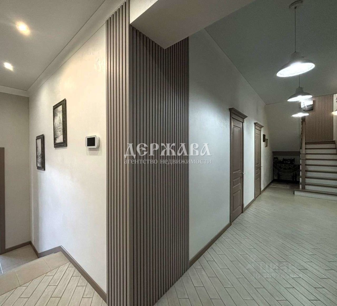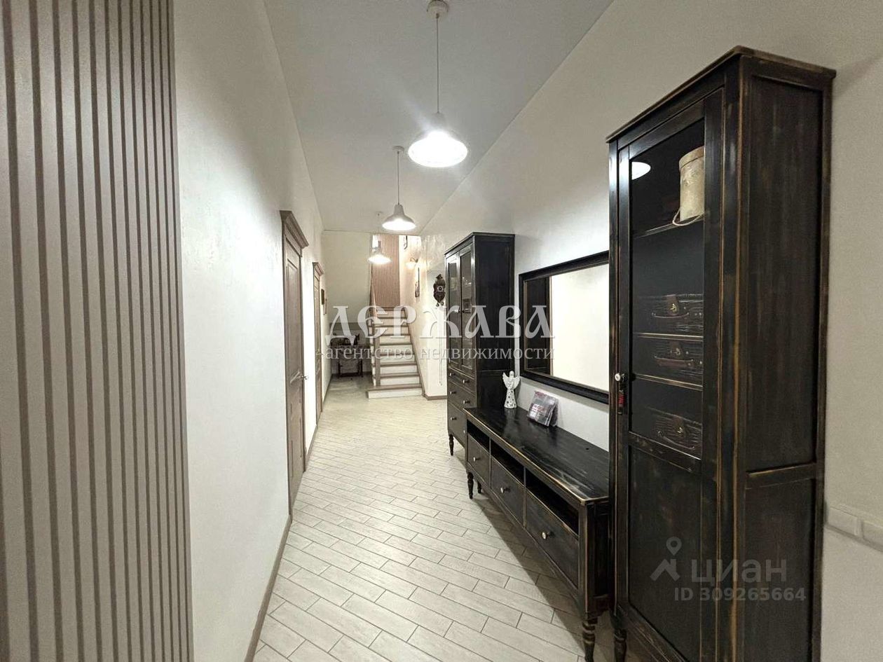 Включает в себя светлый холл с вместительными шкафами для верхней одежды и обуви., три гардеробных, 4 спальных комнаты, кухню - гостиную с выходом на террасу, два совмещенных санузла, гардеробную комнату с зоной для стирки, гляжки и сушки