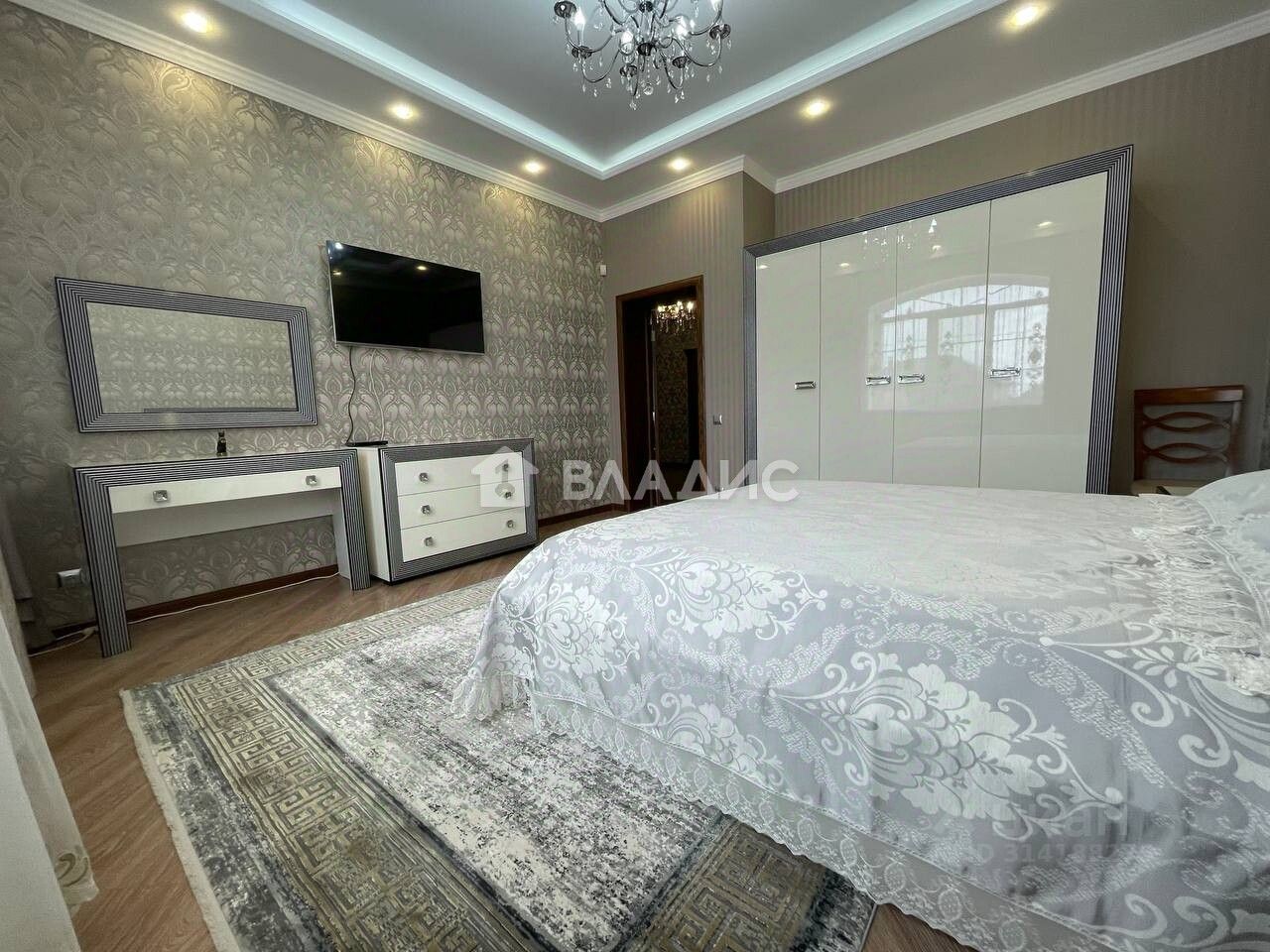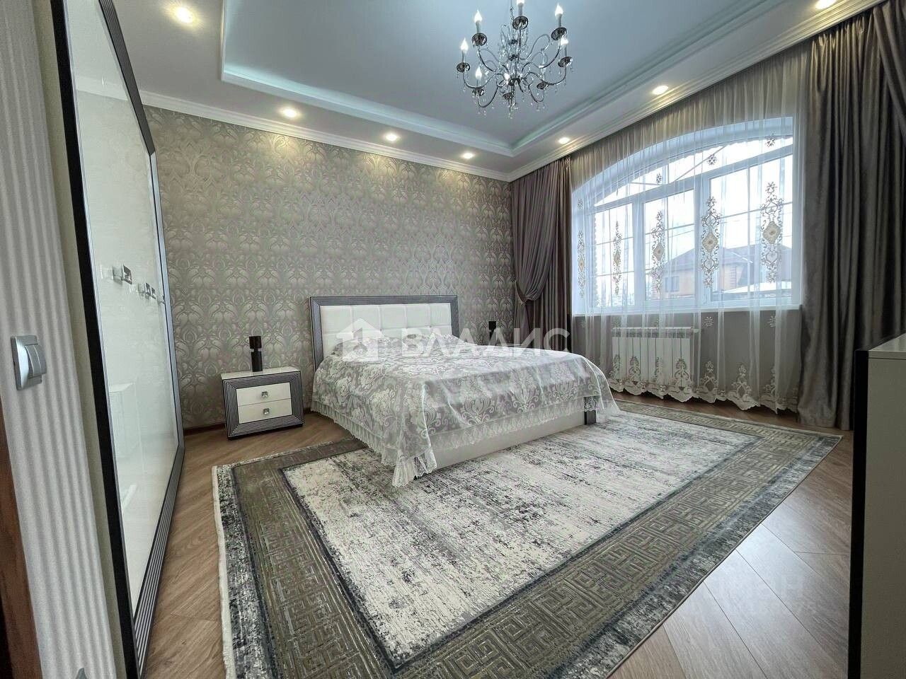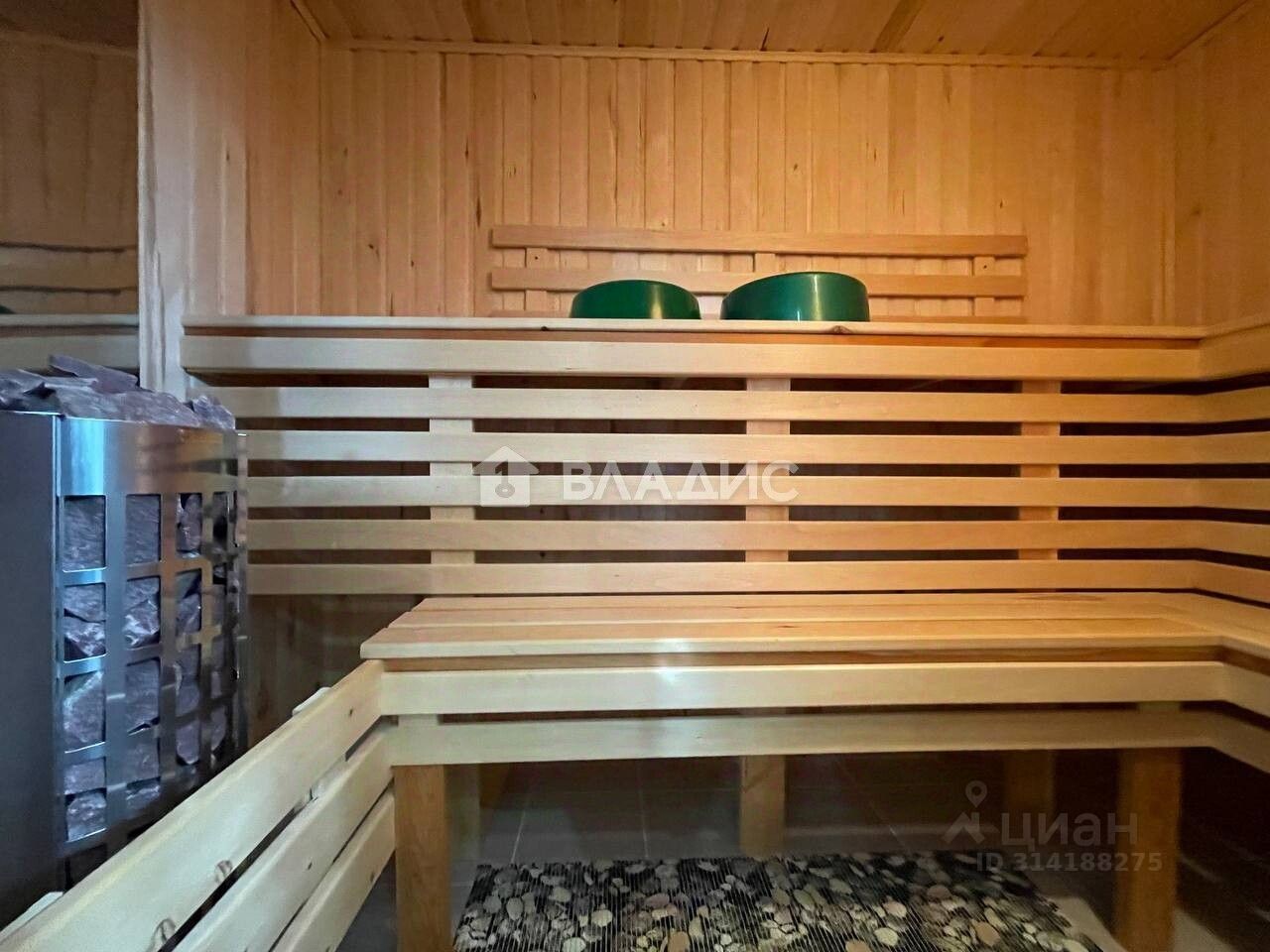 В доме 3 спальни(19.6+18,7+13,9) и гостиная 59,8м2 , кухня 30,7 м2, коридор, прихожая, две гардеробной, два с/у, технические помещения- котельная, сауна.