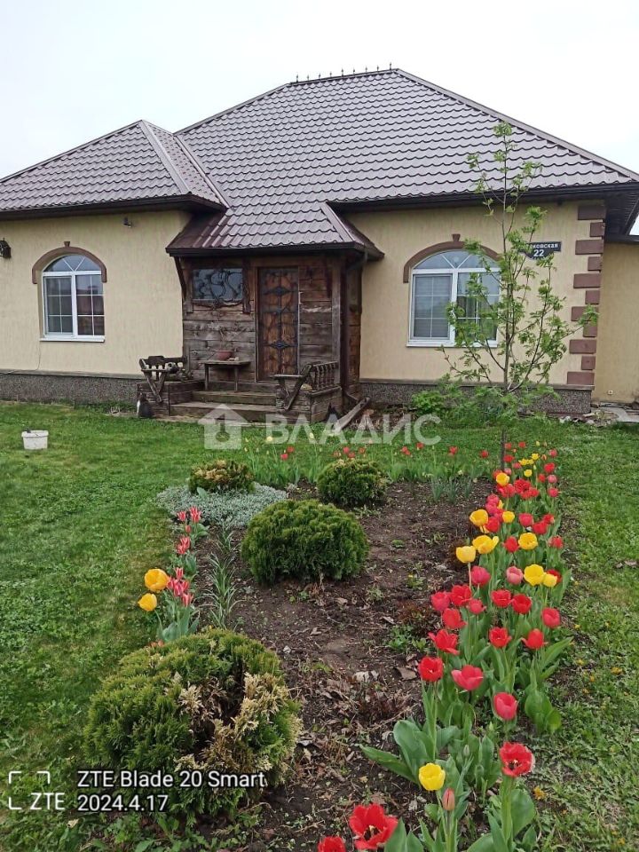 Продаётся одноэтажный блочный дом площадью 150,2 м² с участком 15 соток. Дом построен в 2012 году и имеет все необходимые коммуникации: электричество, водоснабжение, газ, канализация (3 переливных септика). Также к дому пристоен гараж, веранда с выходом в сад, хозпостройки и укрепленный подвал. В доме три жилые комнаты общей площадью 45,2 м², просторная кухня-столовая площадью 26,8 м², высокие потолки — 3 метра.
