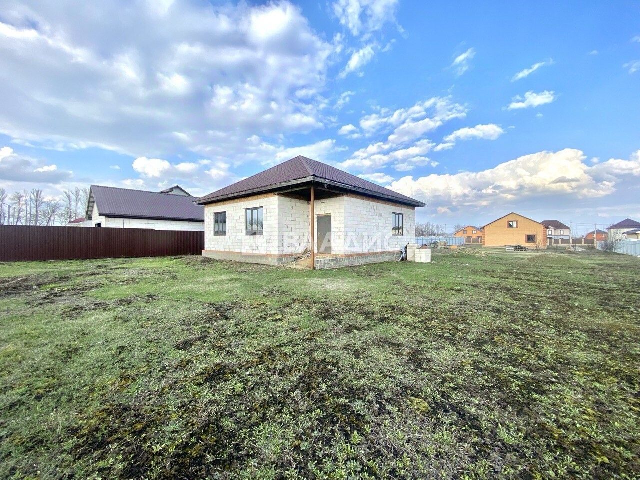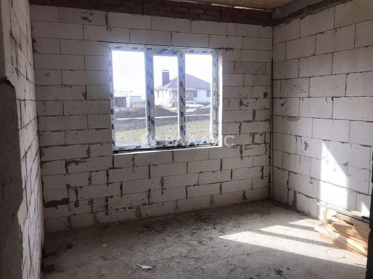 Вода заведена в дом, имеется разводка канализации. Черновой бетонный пол, черновые потолки, металлопластиковые окна. Кухня 14.3 м, спальни 14.5 м и 12.2 м, гостиная 21 м.