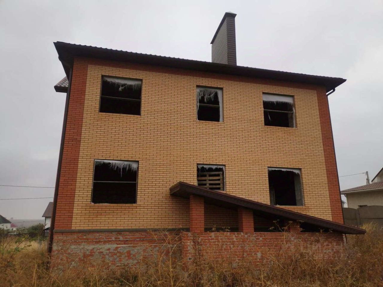 Очень прочный, капитальный конструктив: Внешние стены - керамзитобетонный блок (М-50) 40 см, изовол (Ст-75) 10 см, керамический кирпич облицовочный одинарный (железногорск) 12 см. Внутренние несущие стены - силикатный кирпич (1,5 кирпича). Высота потолков - 3 м. Полноценный цокольный этаж - высота потолков 2,8 м, стены из фундаментных блоков, внешние двойные с утеплением изоволом, внешним рядом из керамического кирпича и гидроизоляцией. Стены цокольного этажа опираются на монолитный армированный ленточный фундамент. Сделаны армированные сейсмопоясы в 3-х уровнях. Все три этажа перекрыты ж/б пустотными плитами. На дом есть проект.