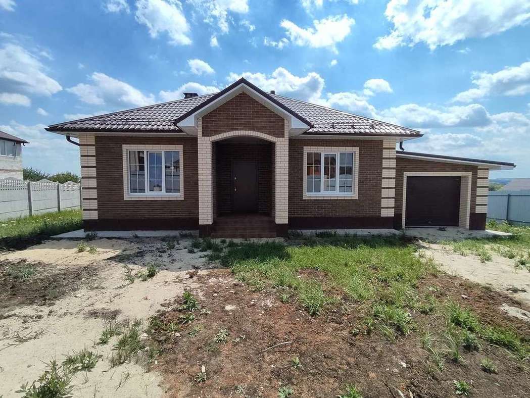 Спальни 3, кухня-гостиная с выходом на террасу, терраса, сан-узла 2, кательная, просторный хол, прихожая, гараж, отмостка, забор, ворота, калитка.