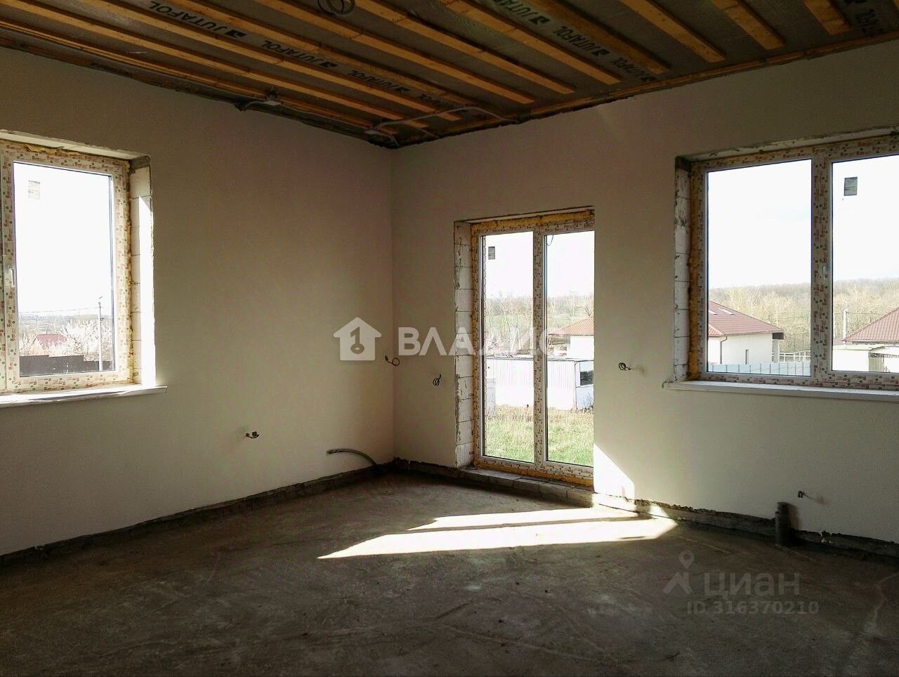Дом построен из блоков, перекрытия деревянные, кровля из металлочерепицы. Есть все необходимые коммуникации: электричество, водоснабжение и канализация. Отопление индивидуальное, осуществляется котлом. Высота потолков — 3 метра. Дом без отделки, что даёт вам возможность обустроить его по своему вкусу.