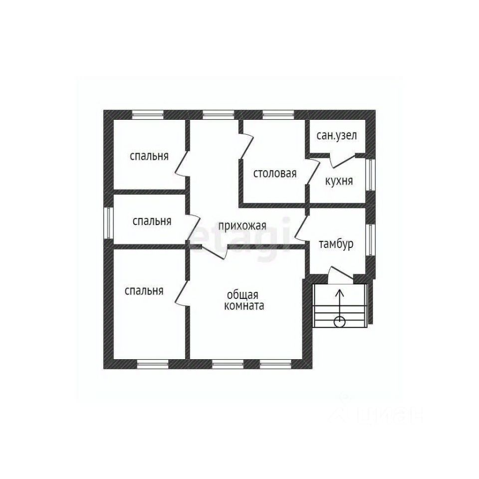 В доме пять комнат, кухня и санузел. Все необходимые коммуникации уже проведены: электричество, газ, водоснабжение и отопление. Стены отштукатурены, полы залиты, а потолок утеплен. Дом светлый и теплый.