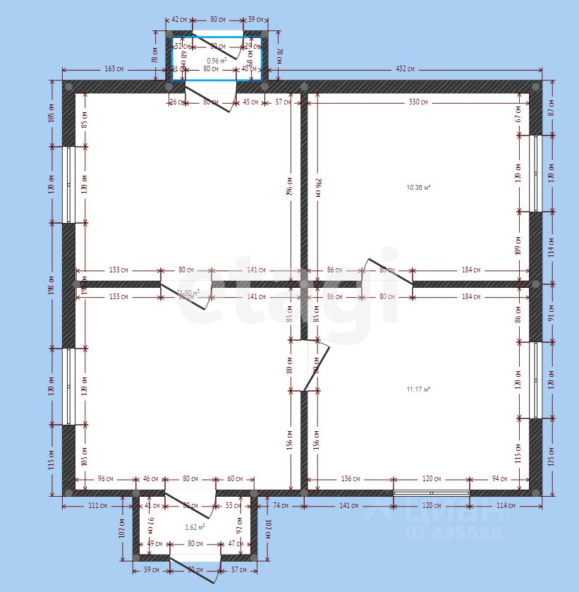 На участке располагаются: дом 44 кв. м 1967 года постройки, гараж с сараями, и коробка двухэтажного дома без крыши. Межевание проведено.