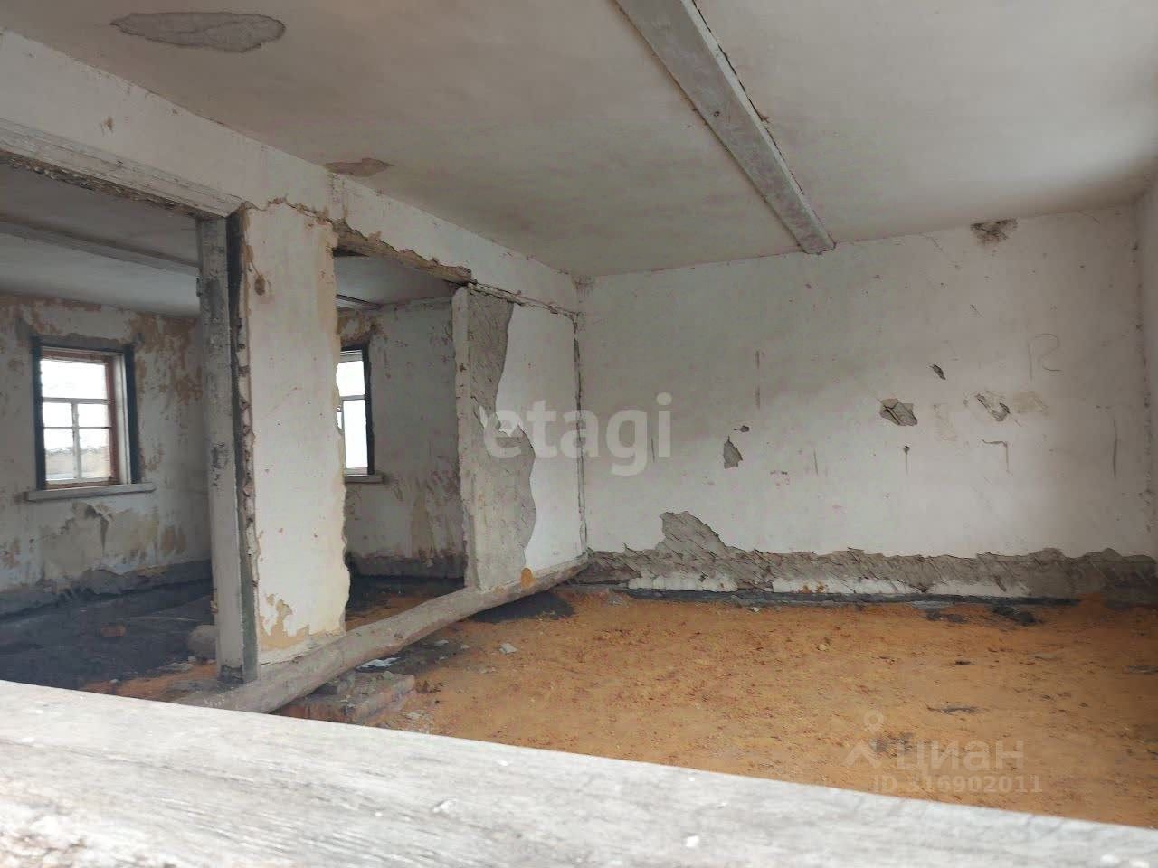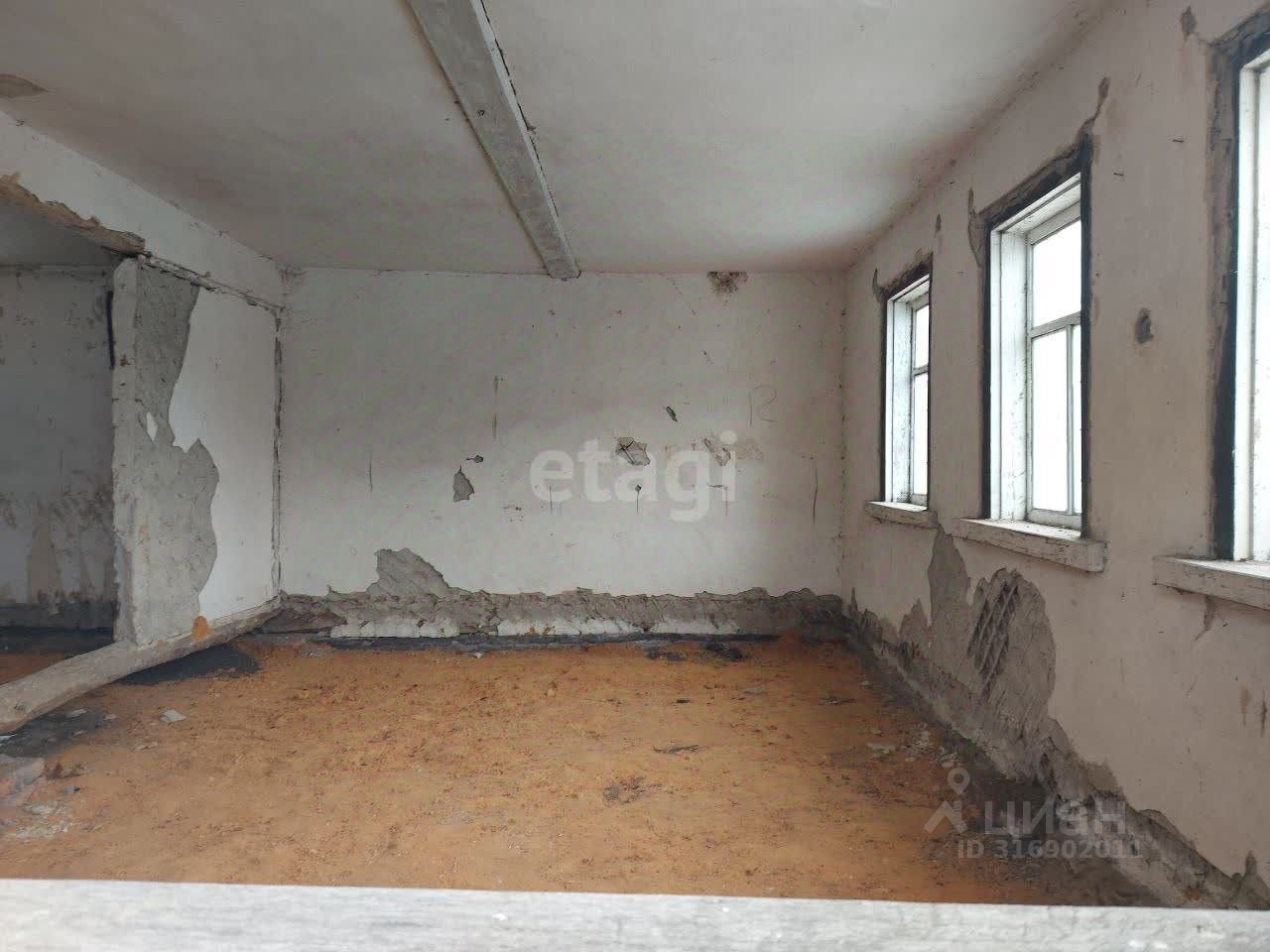 Дом деревянный, обложен кирпичом, высокий фундамент, большие оконные проемы, высокие потолки, но требует полного ремонта.