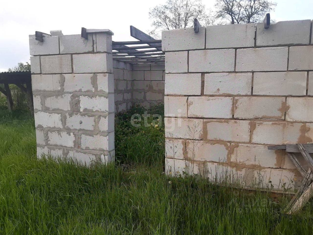 На территории находится не дострой, подвал, беседка.