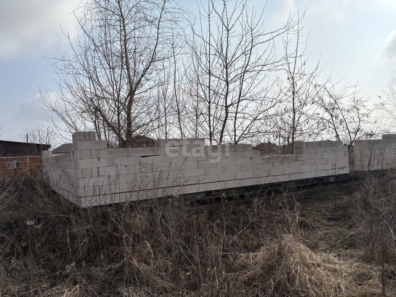 Участок площадью 18 соток, на территории расположен фундамент и уложены несколько рядов блоков. Рядом уже построены дома, есть линия газа, электричество от столба, находится на территории, централизованное водоснабжение.