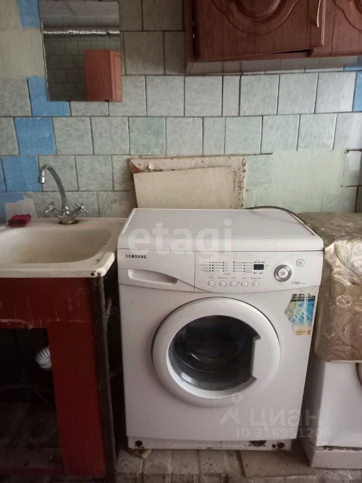На этаже есть кухня общего пользования, со своим столом и навесным шкафчиком, установлена стиральная машинка.
