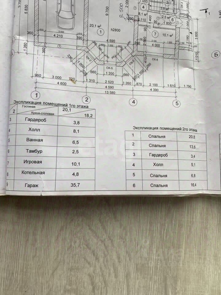 Гардероб, холл, тамбур, жилая комната, кухня-гостиная, игровая, ванная комната, котельная, гараж.