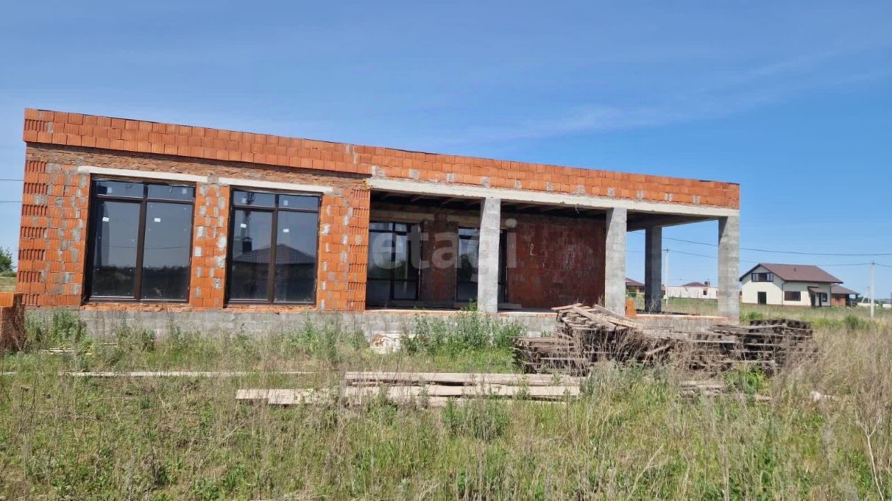 Дом подходит под сельскую ипотеку!!! Продаётся современный, одноэтажный дом в европейском стиле! Дом построен из теплого керамического блока 51 см на ленточном фундаменте 1,5м. Очень удобная планировка! Две большие спальные комнаты, 23 с гардеробом и своим санузлом и 22 кв м , кабинет 13 кв м, кухня-гостиная 45 м с выходом на террасу 63 м. По всему периметру дома терраса ее можно остеклить. Большие витражные окна- это всегда стильно и красиво! Коммуникации: Свет заведен и разведен по дому, канализация и вода разведены по дому но не подключены, газ вдоль участка. Центральная канализация на массиве. Кроме спален, везде теплый пол. Дом под черновую отделку. Документы готовы. Подходит под любую форму оплаты. Участок ровный 15 соток. Имеется крутой проект, для дальнейшей реализации мечты.