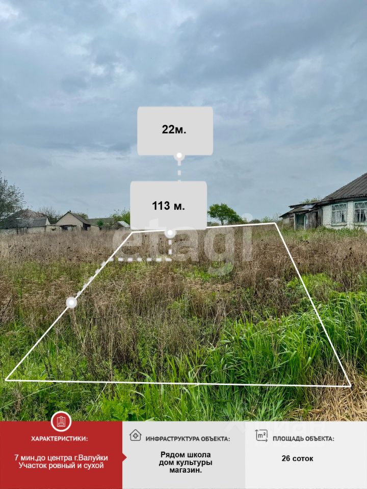 Продаётся земельный участок площадью 26 соток, расположенный в живописном и экологически чистом селе Солоти Белгородской области. Это отличное предложение для тех, кто ищет простор для строительства загородного дома, дачи или ведения сельского хозяйства. Ключевые характеристики участка: Площадь: 26 соток (0.26 га). Расположение: село Солоти, в 20 минутах езды от города Валуйки, что обеспечивает отличную транспортную доступность при сохранении уединённости и тишины загородной жизни. Земельный участок идеально подходит для индивидуального жилищного строительства, а также для ведения подсобного хозяйства или сельскохозяйственных работ. Участок расположен у асфальтированной дороги, что гарантирует удобный подъезд в любое время года. Коммуникации: Электричество и водоснабжение по границе участка. Возможность подключения газа и других коммуникаций по запросу. Участок находится в экологически чистой местности, в окружении зелёных полей и лесов. Отличный выбор для любителей природы и спокойной жизни вдали от городской суеты. Территория: Ровный, сухой участок, что значительно облегчает процесс застройки и благоустройства. Преимущества: Удобное расположение, близость к городской инфраструктуре. Село с развитой социальной инфраструктурой: магазины, школа, детский сад, медицинский пункт. Возможность постройки как жилого дома, так и дачи для отдыха. Отличный участок для ведения садоводства или агротуризма. Не упустите шанс стать владельцем этого замечательного участка! Это отличная инвестиция в будущее или возможность создать свой уголок в живописном и спокойном месте. Звоните для получения дополнительной информации или организации просмотра!