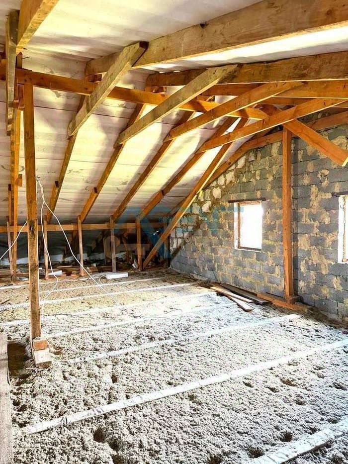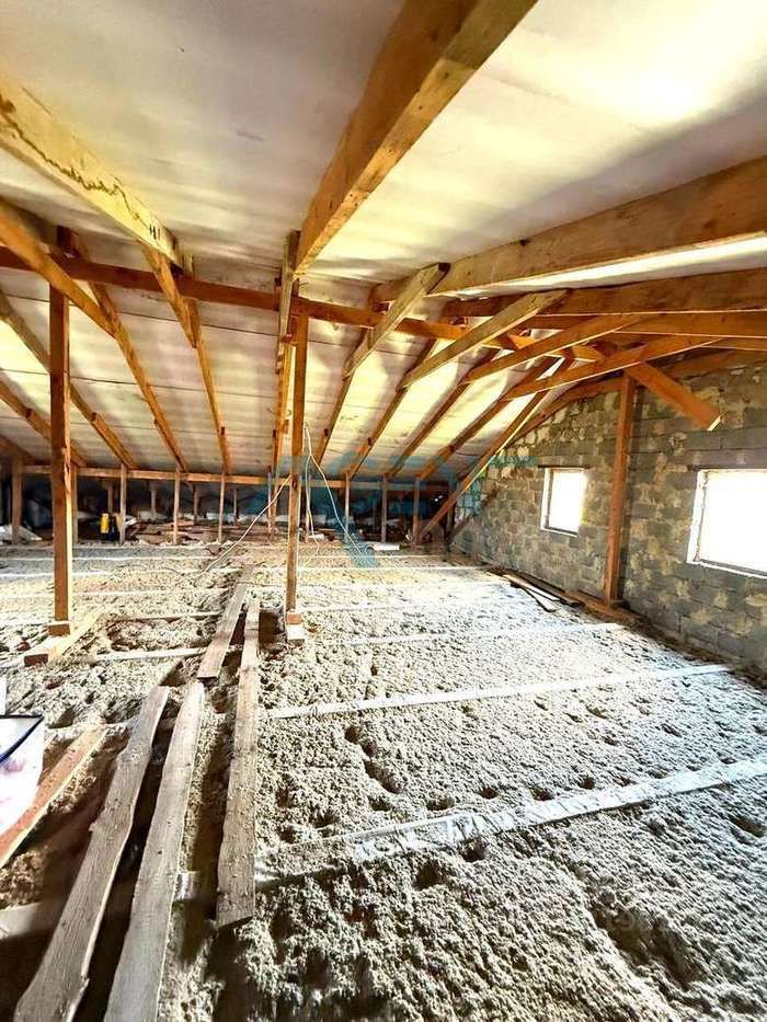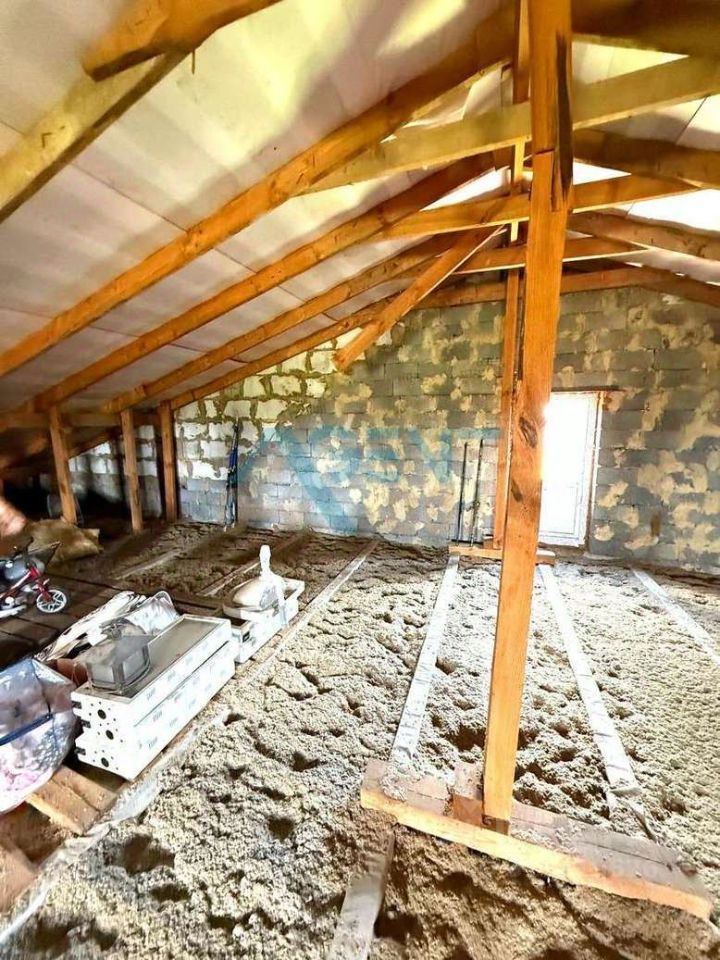 • Первый этаж просторный холл, три жилых комнаты, кухня, котельная и два санузла, • Второй уровень мансарда площадью около 73 квадратов (без внутренней отделки), которую легко обустроить под дополнительную жилую комнату, • Дом построен из блока, • Фасад облицован декоративной штукатуркой типа ''короед'',