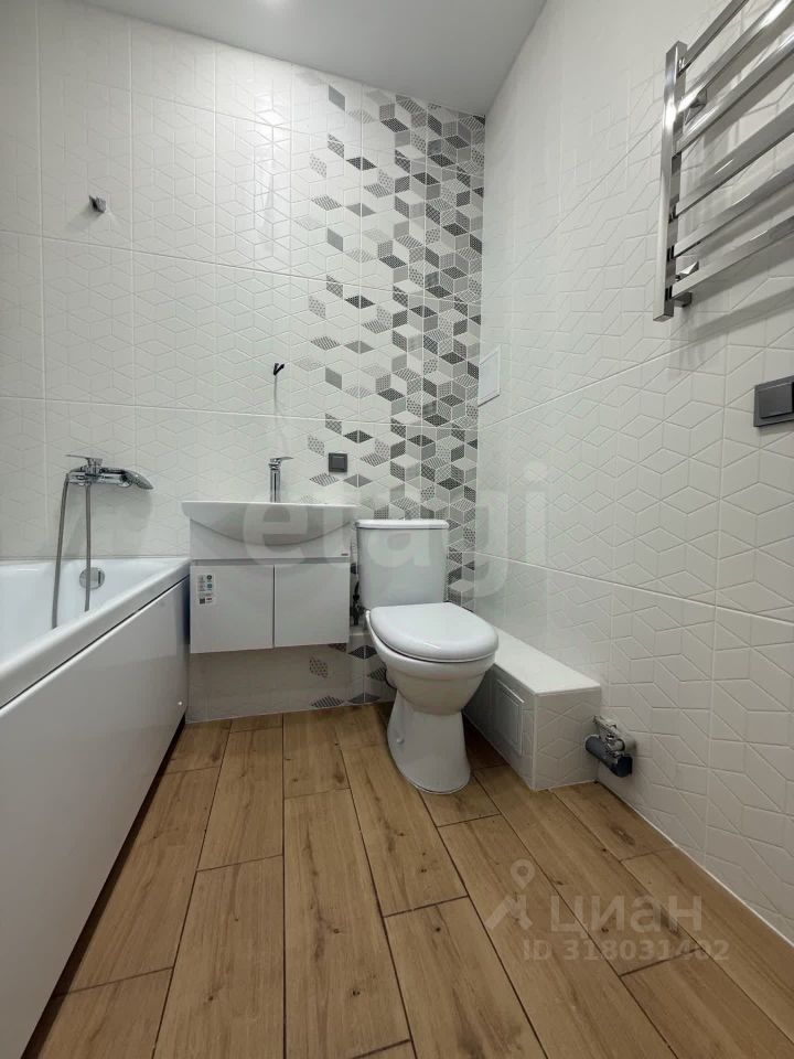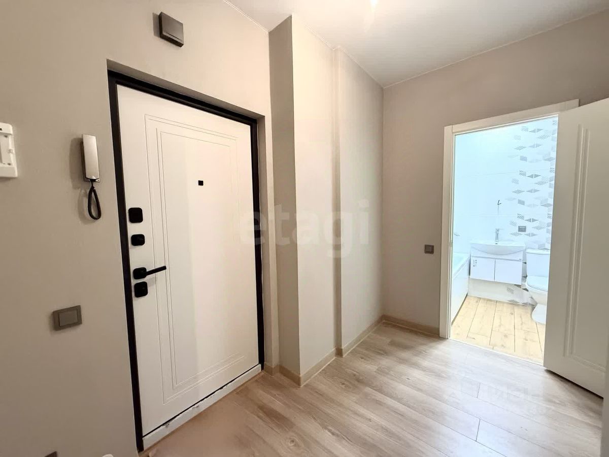 Планировка: спальня, кухня с выходом на лоджию с панорамным остеклением, санузел, просторный коридор с нишей под гардеробную. В квартире выполнен качественный ремонт: на полу ламинат, стены оклеены обоями, натяжной потолок, сантехника в плитке. В комнате установлен кондиционер, на кухне — фильтр с питьевой водой. Установлены умные счетчики, которые автоматически передают показания в управляющую компанию.