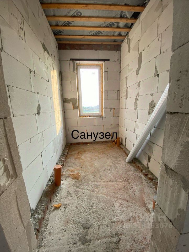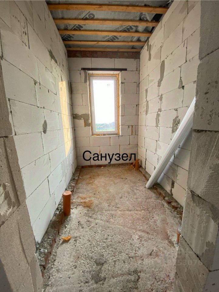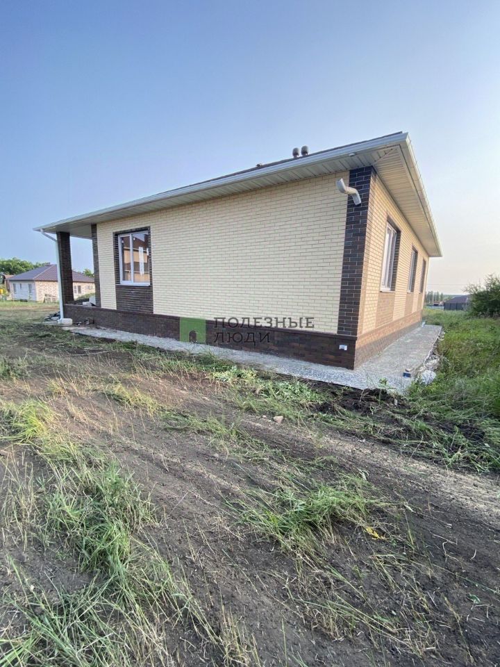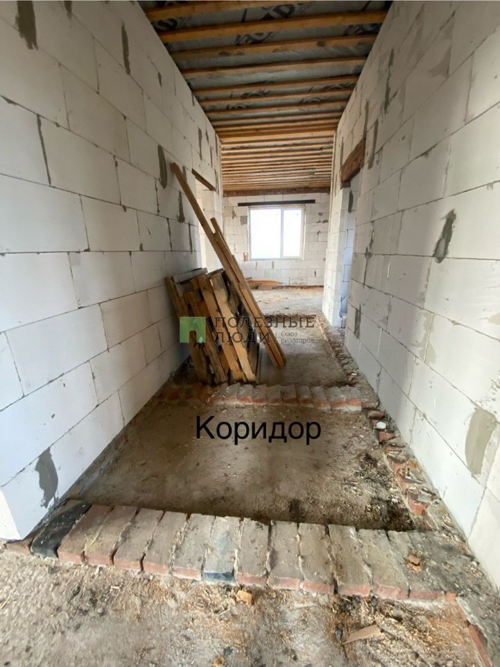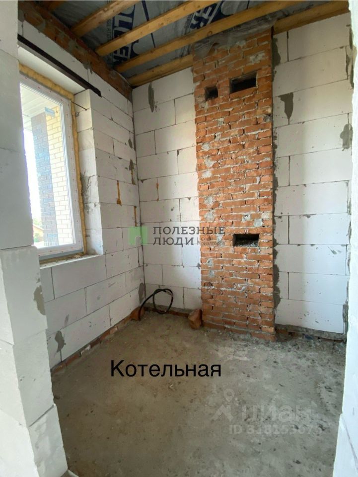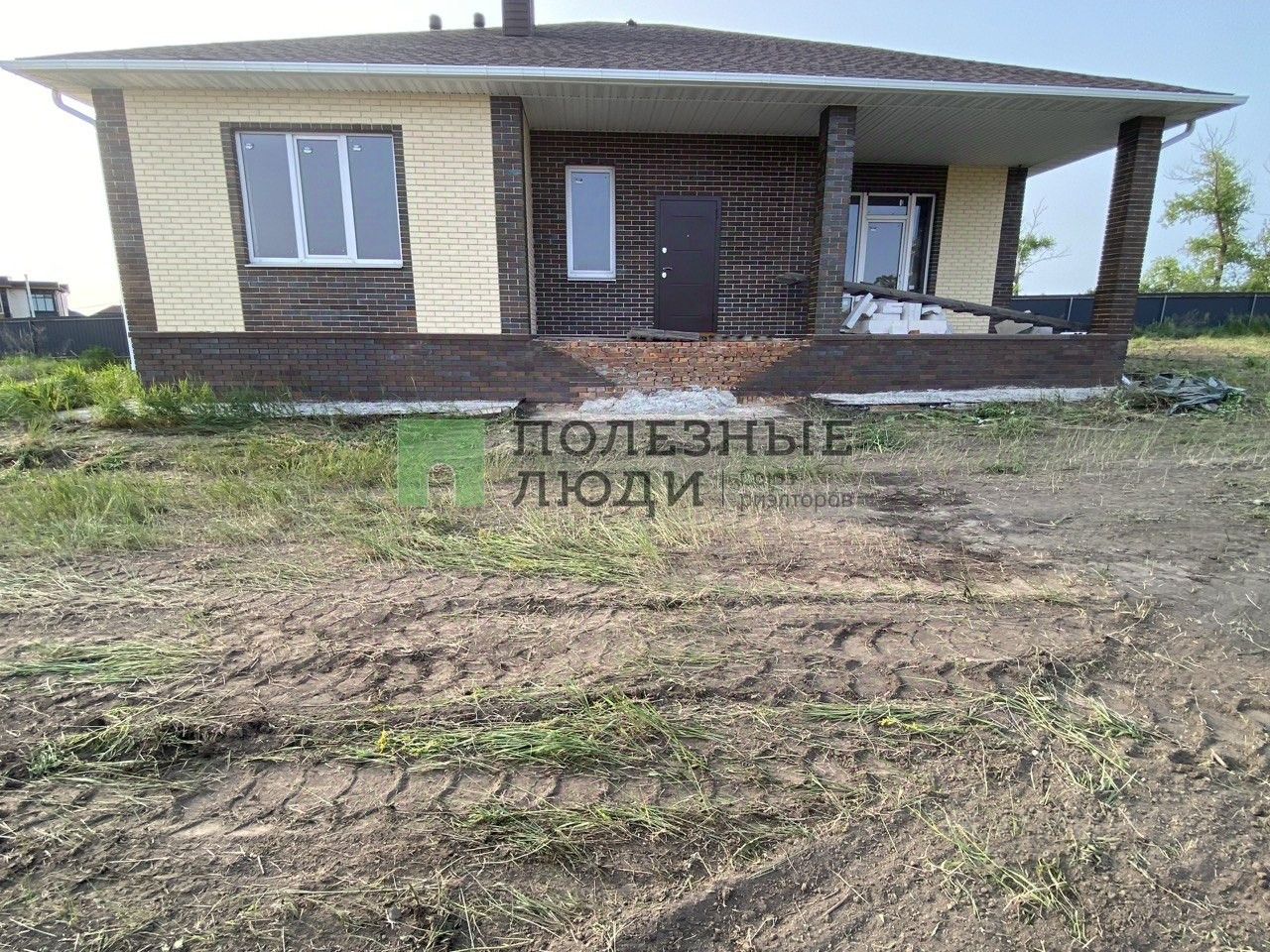 Построен из газосиликатного блока, облицованного клинкерным кирпичом, крыша выполнена из мягкой кровли.