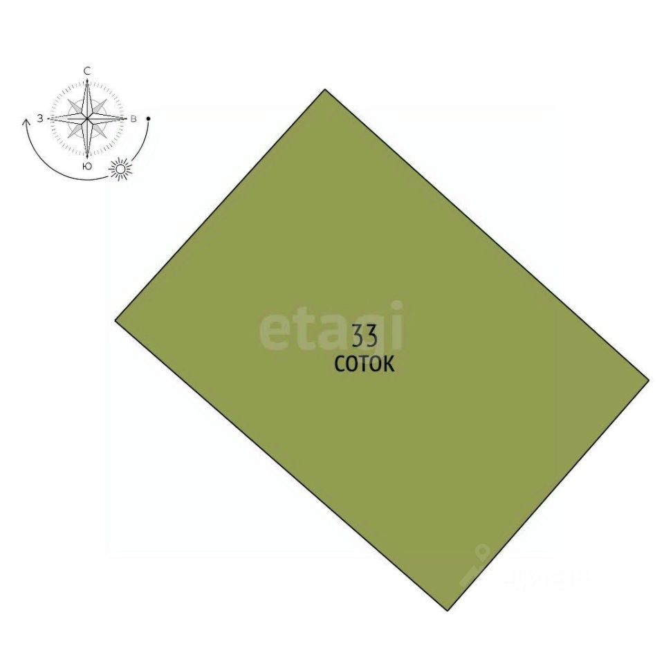 Площадь участка33 сотки