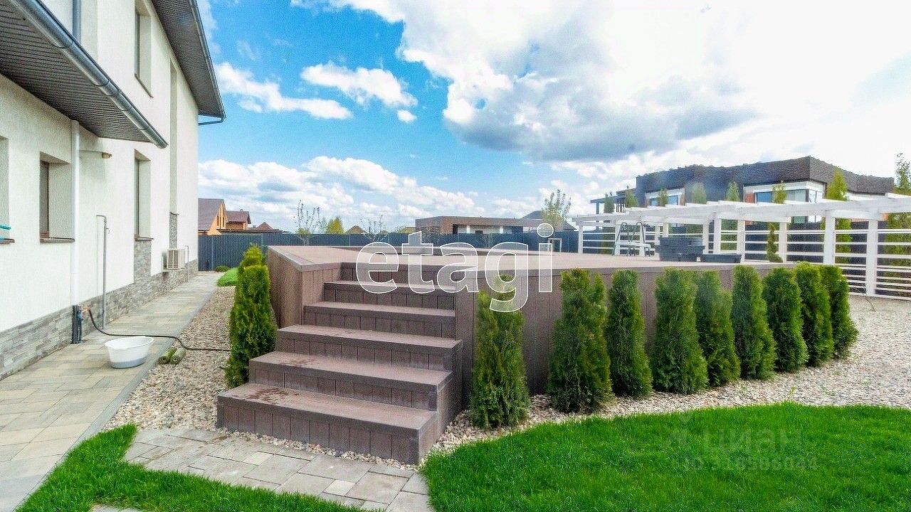 Отличный свежий ремонт. Выполнен ландшафтный дизайн, озеленение, авто полив, пруд, сад, освещение и т.д. Выполненные работы на гарантии до августа 2024г.Красивый вид на город. Улица и переулок тихие, не проездные. Плитка и отмостка уложена на бетонное основание. Участок угловой 16 соток, черта города. Озеленение по фасаду, выведен полив. Планируется посадка сада. Во дворе посажены деревья, много плодовых кустарников, клубника и т.д. Декоративная яблоня. В саду посажен мавританский газон. Везде выполнена укладка агротекстиля, что сводит к минимуму появление сорняков. Мощение тропинок и площадки под перголой выполнено природным камнем на бетонное основание. 2 этажа, просторные комнаты, гардеробная, 2 сан узла, терраса.