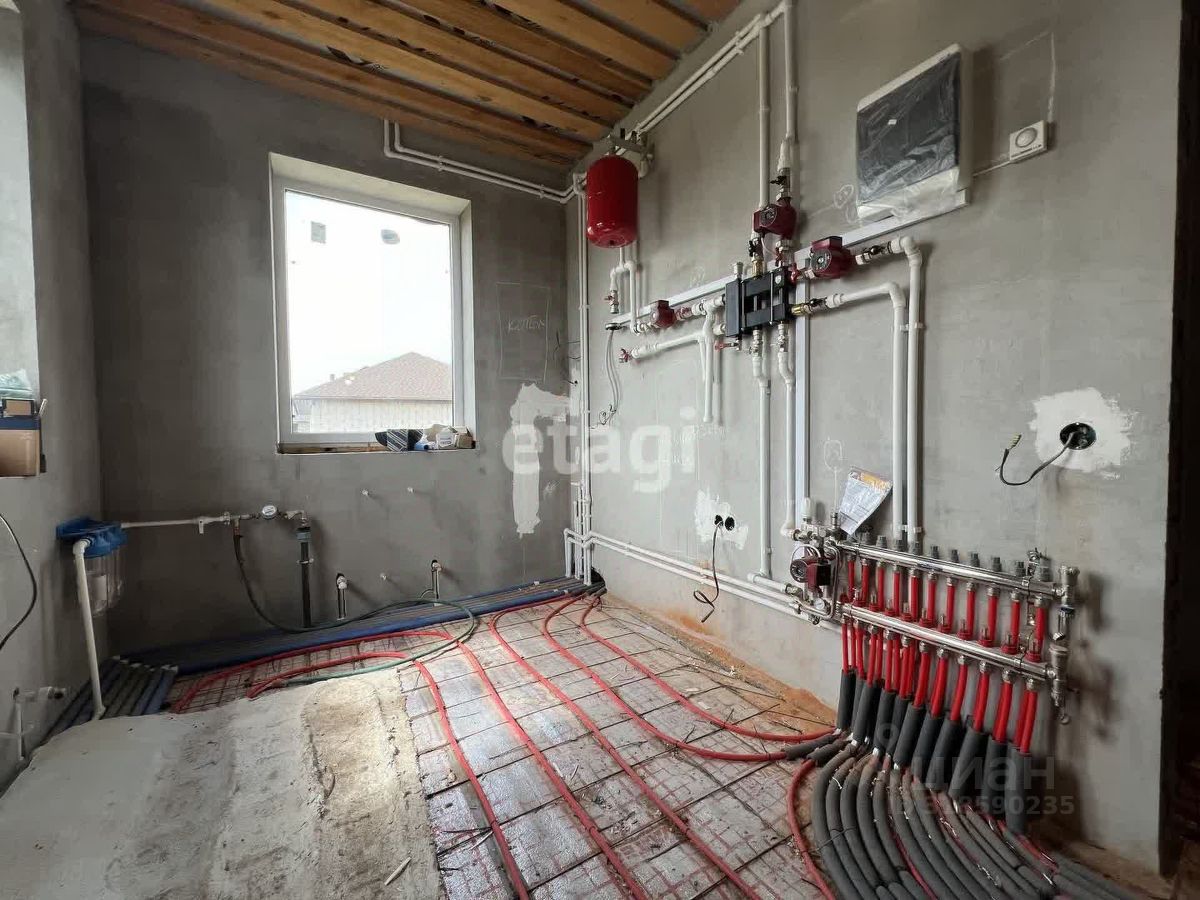 Дом имеет два этажа, установленной металлической лестницей и камином в зоне кухни-гостиной .На полах черновое покрытие протянута система теплый пол по всему периметру дома.