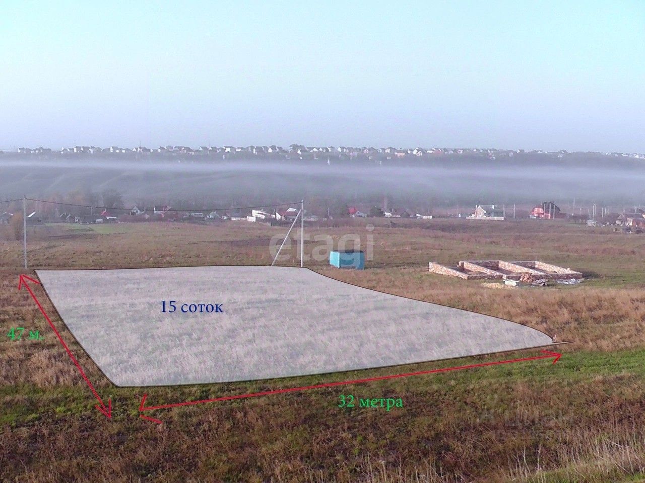 ОПИСАНИЕ. Участок 15 соток, есть уклон. В задумке было строительство дома как раз на возвышенности, оттуда открывается шикарный вид, ниже застроек не будет, т.к. там земли сельхоз назначения.
