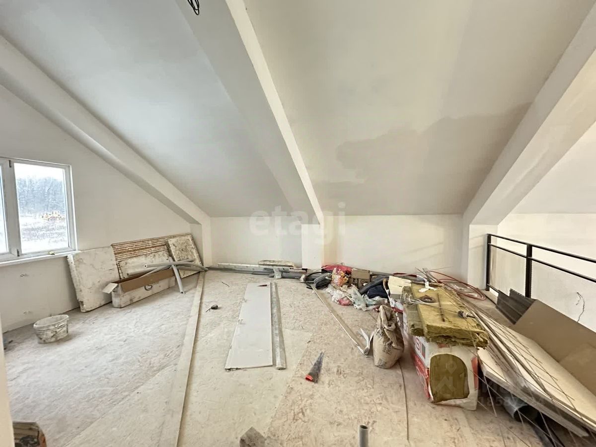 Внутри предчистовая отделка - стены оштукатурены, полы залиты, уложенная дорогая качественная плитка, проведен теплый пол по 1 этажу, кроме спальни, разведена электрика и выведены коммуникации под батареи и сантехнику.