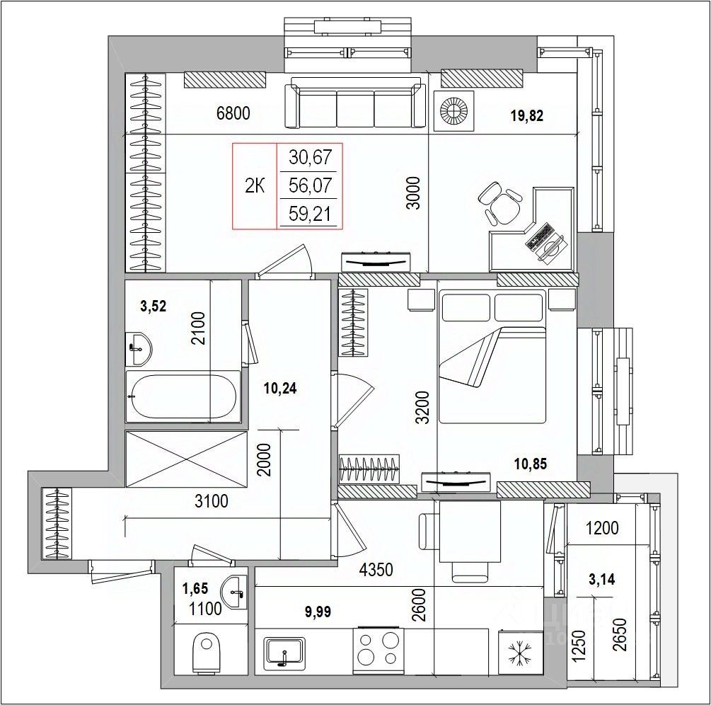 Общая площадь59,21 м2