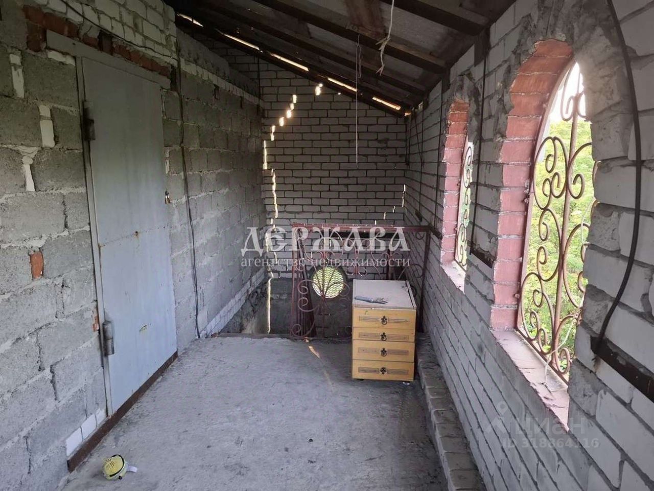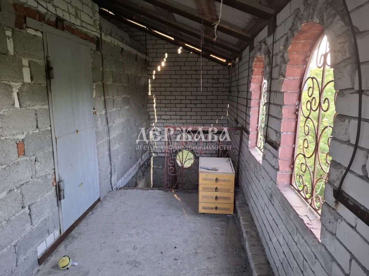На первом этаже комната с печным отоплением, гараж, на втором-две комнаты, терраса.