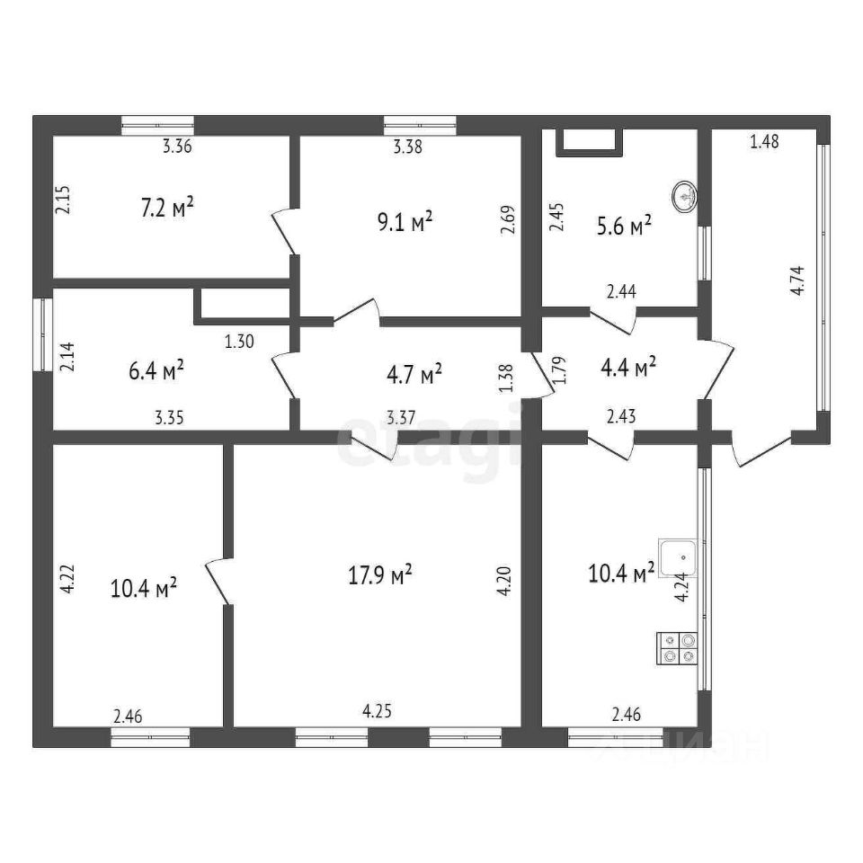 Общая площадь76,1 м2