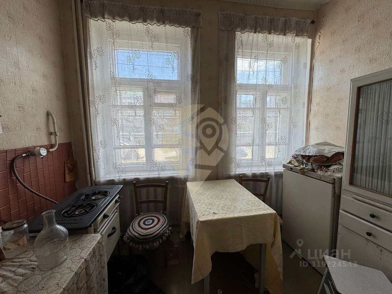 • Хорошее состояние, • Окна - деревянные рамы, • Потолок - потолочная плитка, • Напольное покрытие - линолеум, • Установлены счетчики на воду и на газ, • Санузел совмещенный и покрашен, • Чугунные радиаторы отопления, • Кухонный гарнитур с плитой и мебель остаются при продаже.