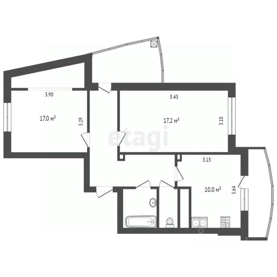 Квартира на среднем этаже с эркером. Большая 2-х комнатная квартира ПЕРЕДЕЛАНА В 3-х комнатную.