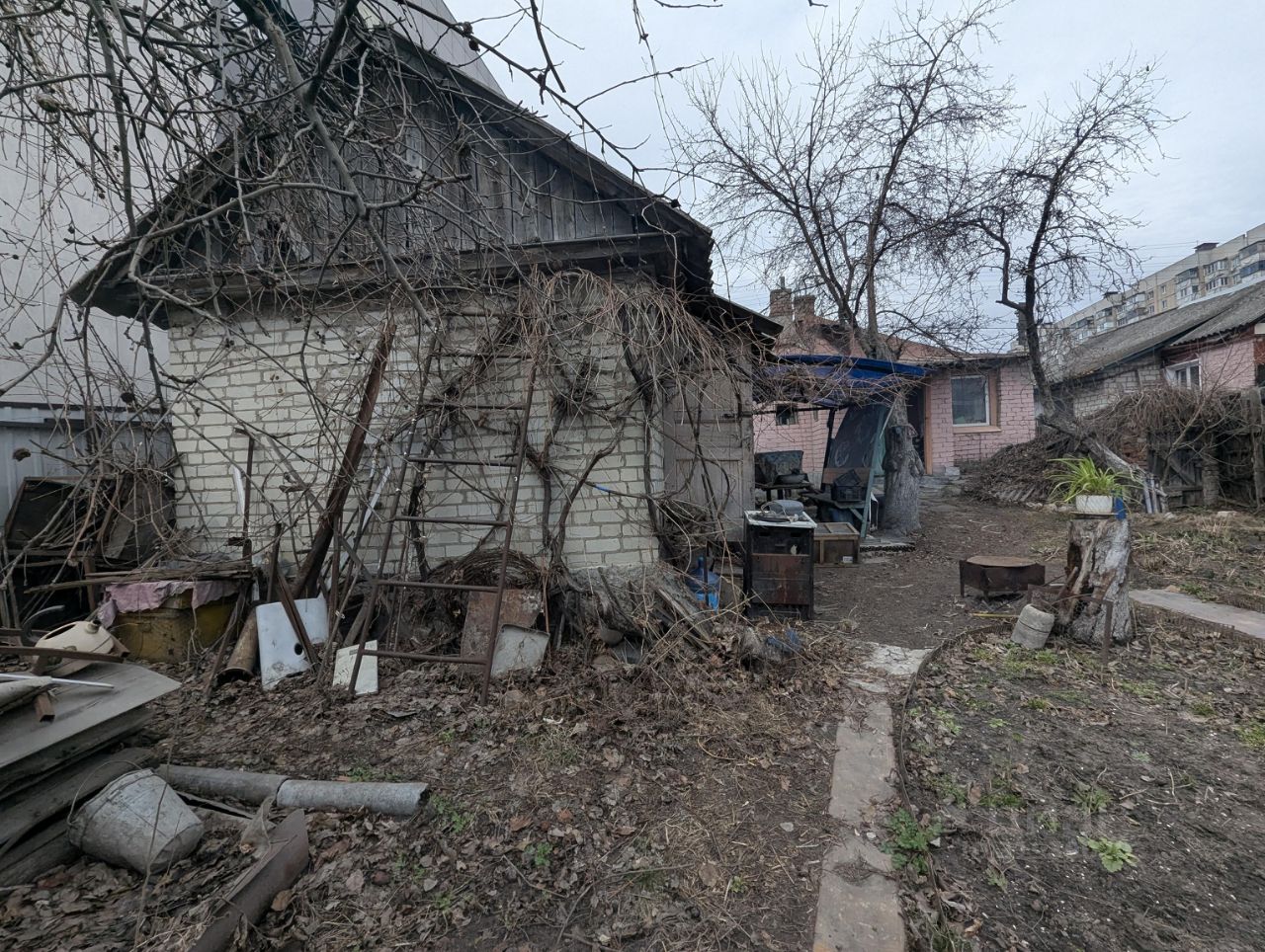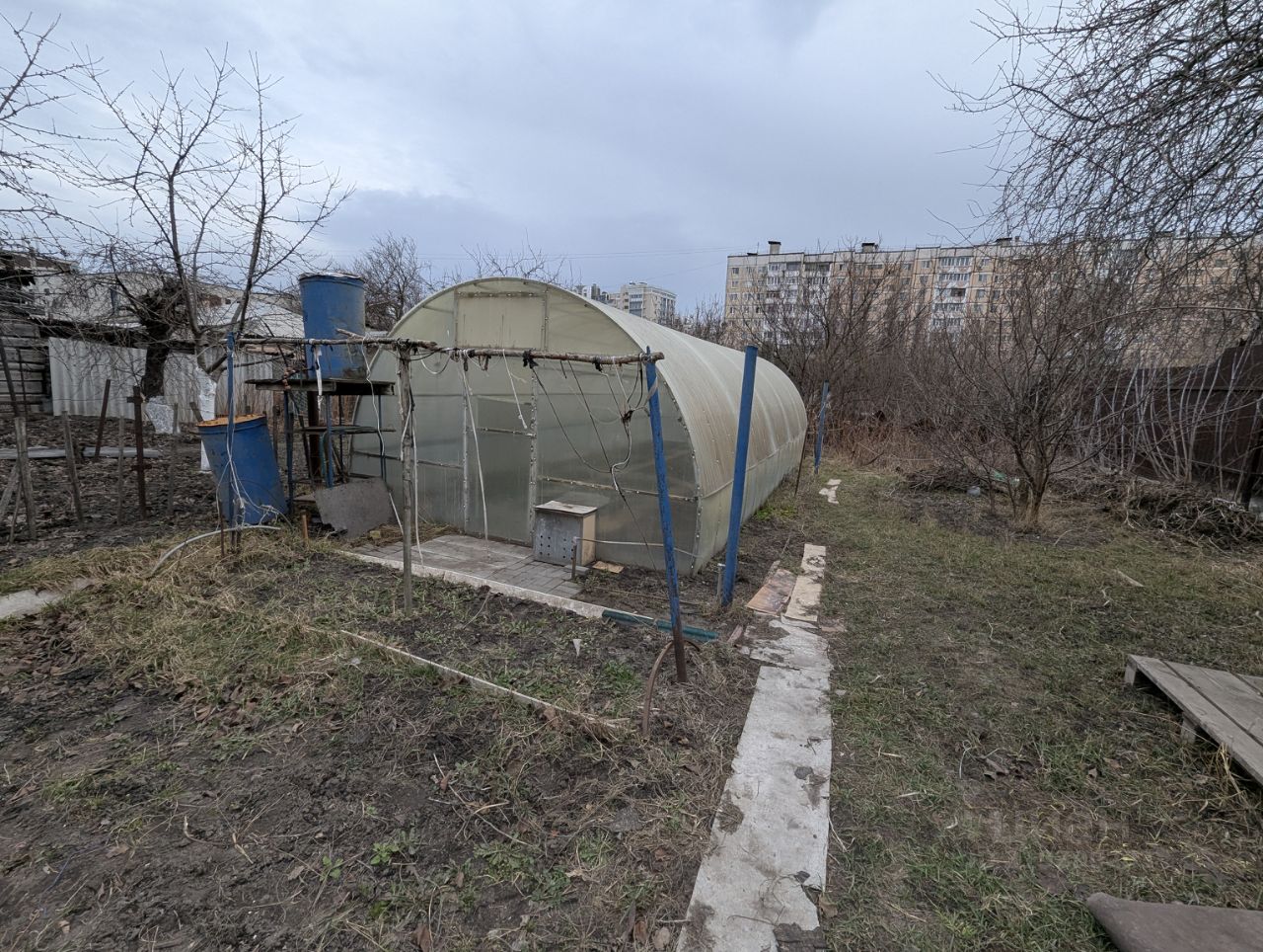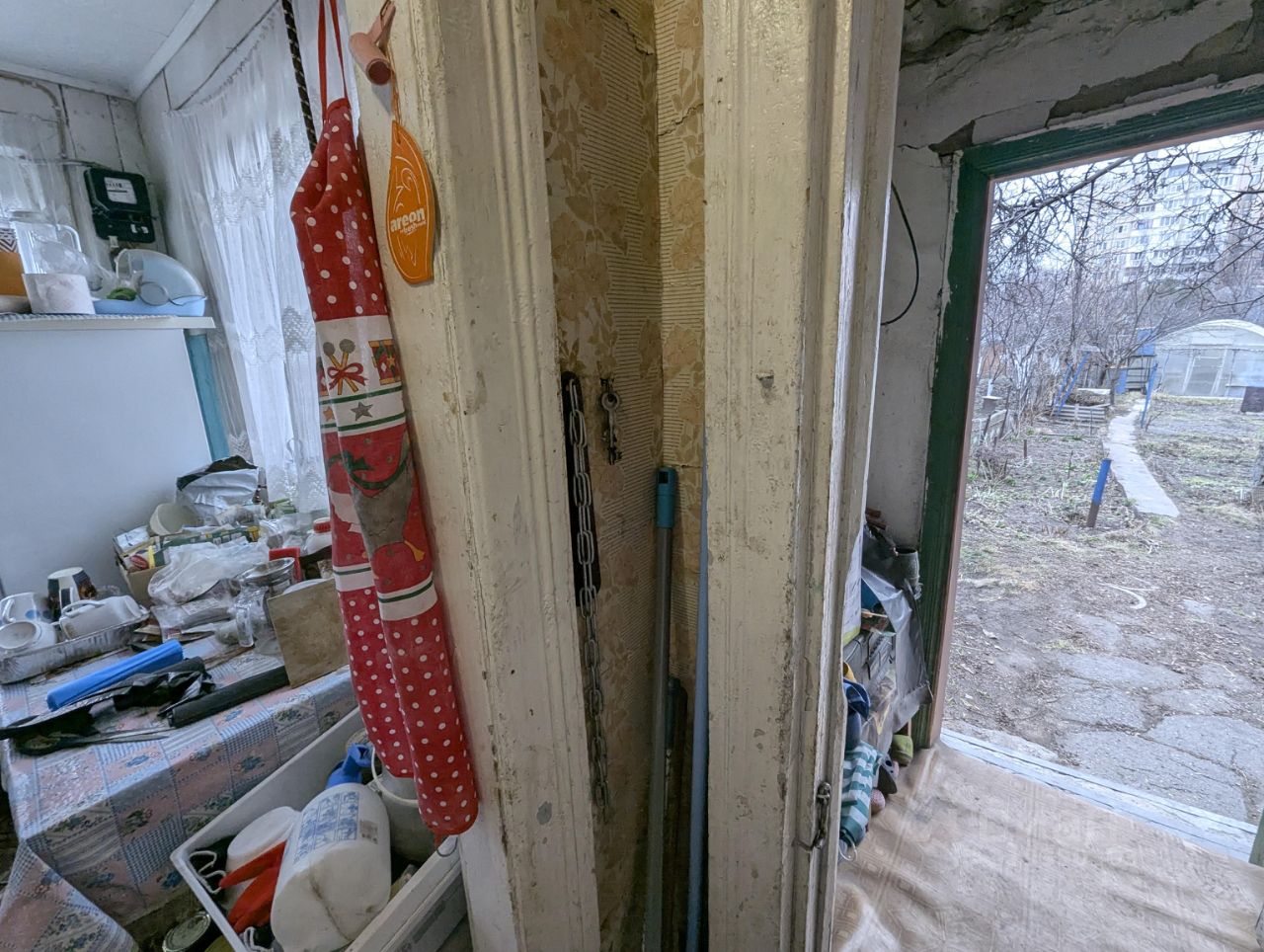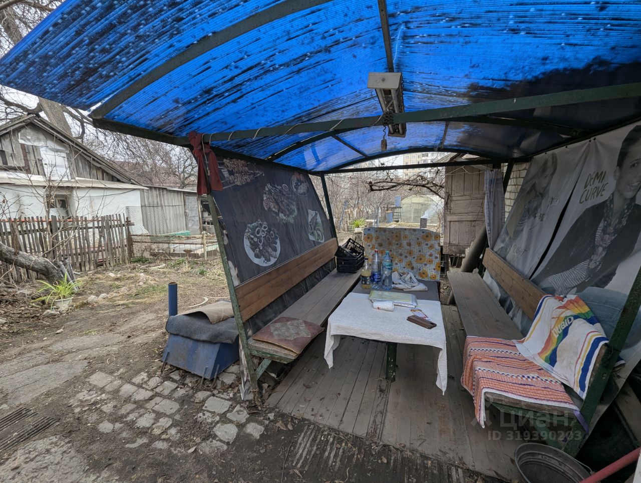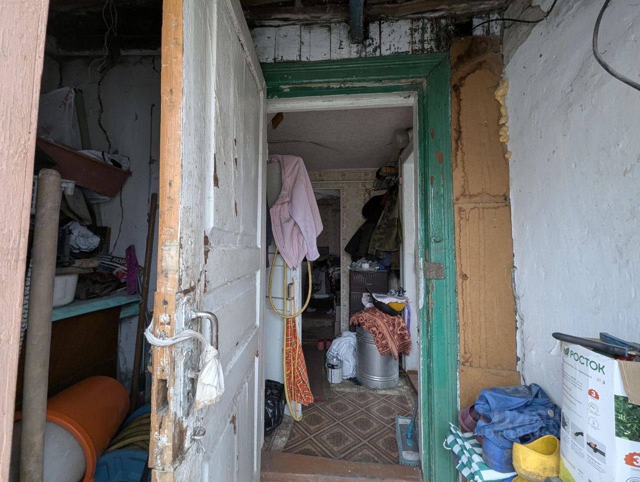 Металлические ворота, участок огорожен. На территории есть капитальный гараж со смотровой ямой, а также большая теплица для выращивания овощей. Глубокий погреб для хранения сделан из кирпича, снаружи утеплен. Есть беседка с обеденным столом и двумя скамьями. Обустроен навес от дождя. В доме 2 комнаты, кухня и ванная. Коммуникации центральные. Туалет- на улице, но можно сделать в доме, как это сделал другой владелец. Состояние дома жилое, требуется ремонт. Землей владеют оба хозяина дома, но по факту второй хозяин в доме не живет, всем земельным участком пользуется одна семья.