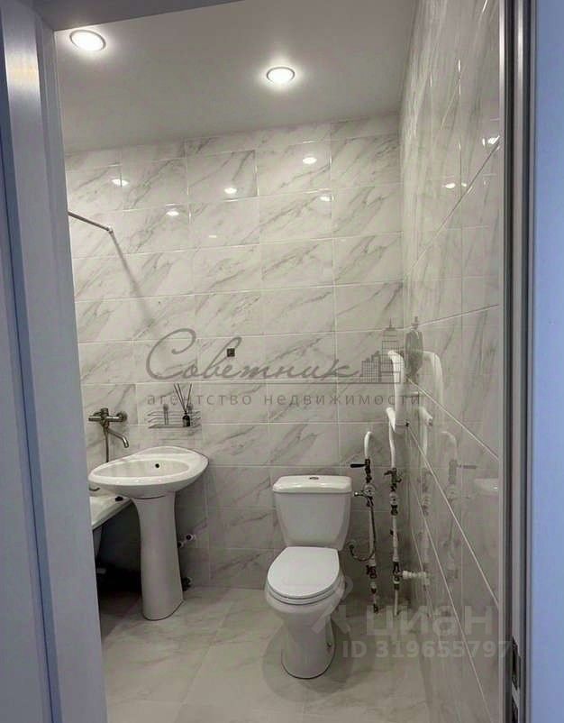- санузел совмещенный ,кафель до потолка .
