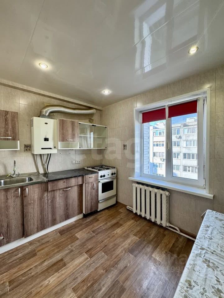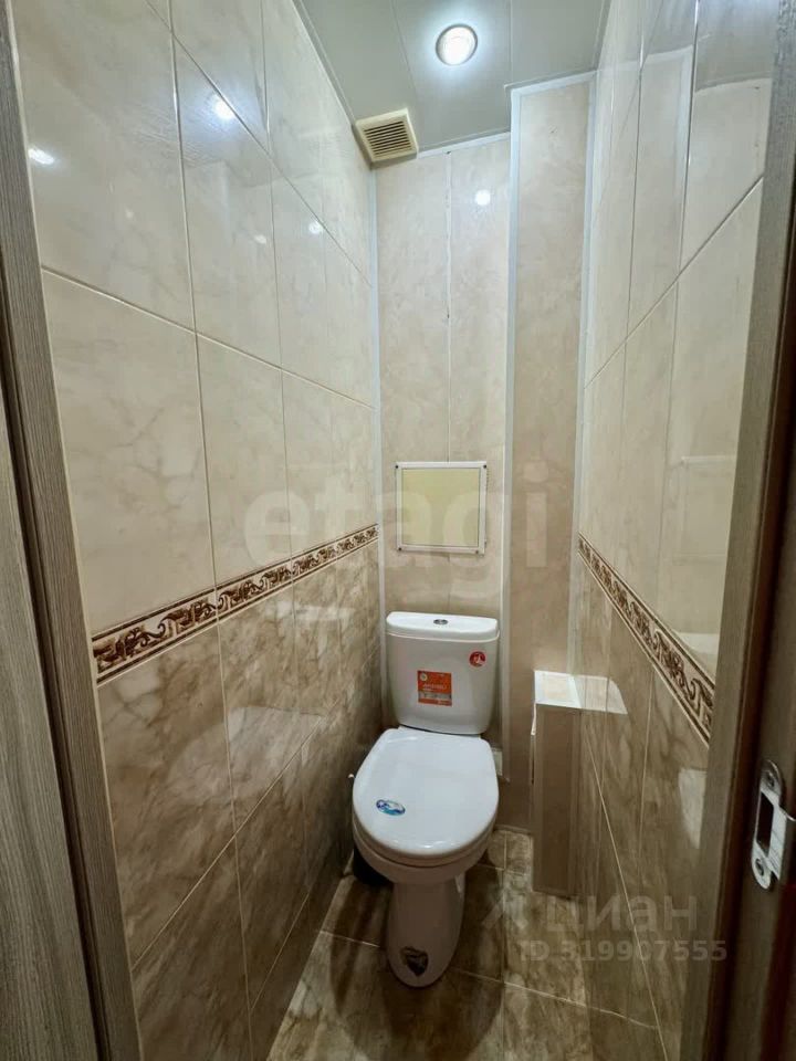 Санузел раздельный в кафельной плитке . Удобная кухня 7м2 , правильной формы , функциональна для и приготовления , и для приема пищи.