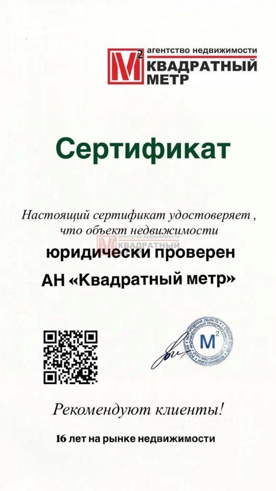 ''Проверено АН ''Квадратный Метр''''.