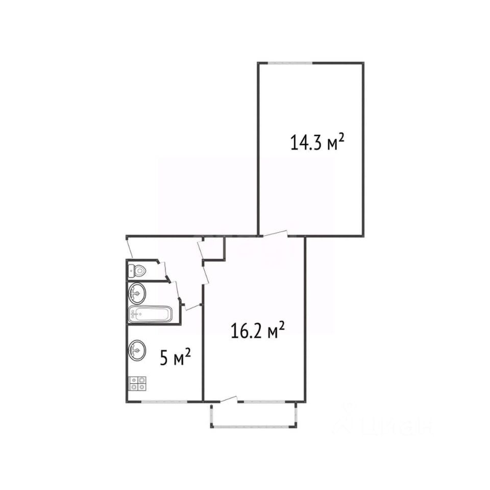 Просторная планировка с отличным освещением Квартира состоит из двух отдельных жилых комнат (16,2 м² и 14,3 м²), что идеально подходит для семьи, пары или сдачи в аренду. Кухня 5 м² позволяет комфортно разместить всю необходимую технику, а разделённый санузел добавляет удобства в повседневной жизни.