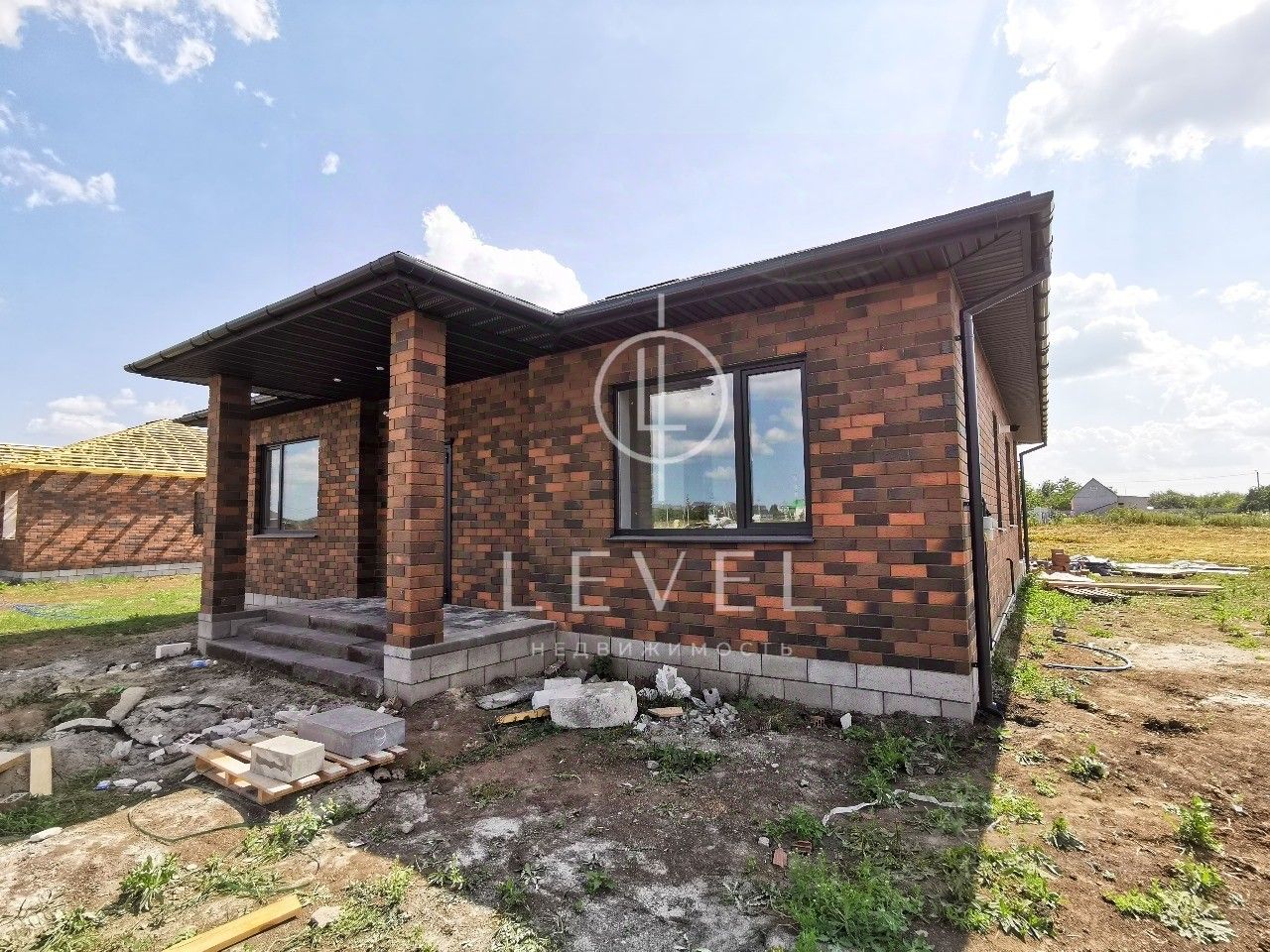 Конструктивные особенности дома: Армированный монолитно-ленточный фундамент. Цоколь выложен специальным блоком производства ЖБК. Внутренние стены выложены газобетонным блоком, и облицованы керамическим кирпичом. Перекрытия между первым этажом и чердачным помещением деревянные, утепление 15 сантиметров. Кровля дома гибкая черепица (Docke DRAGON) Окна ПВХ Veka (2 камеры, 3 стекла) 70-й профиль. Система теплый пол во всем доме.